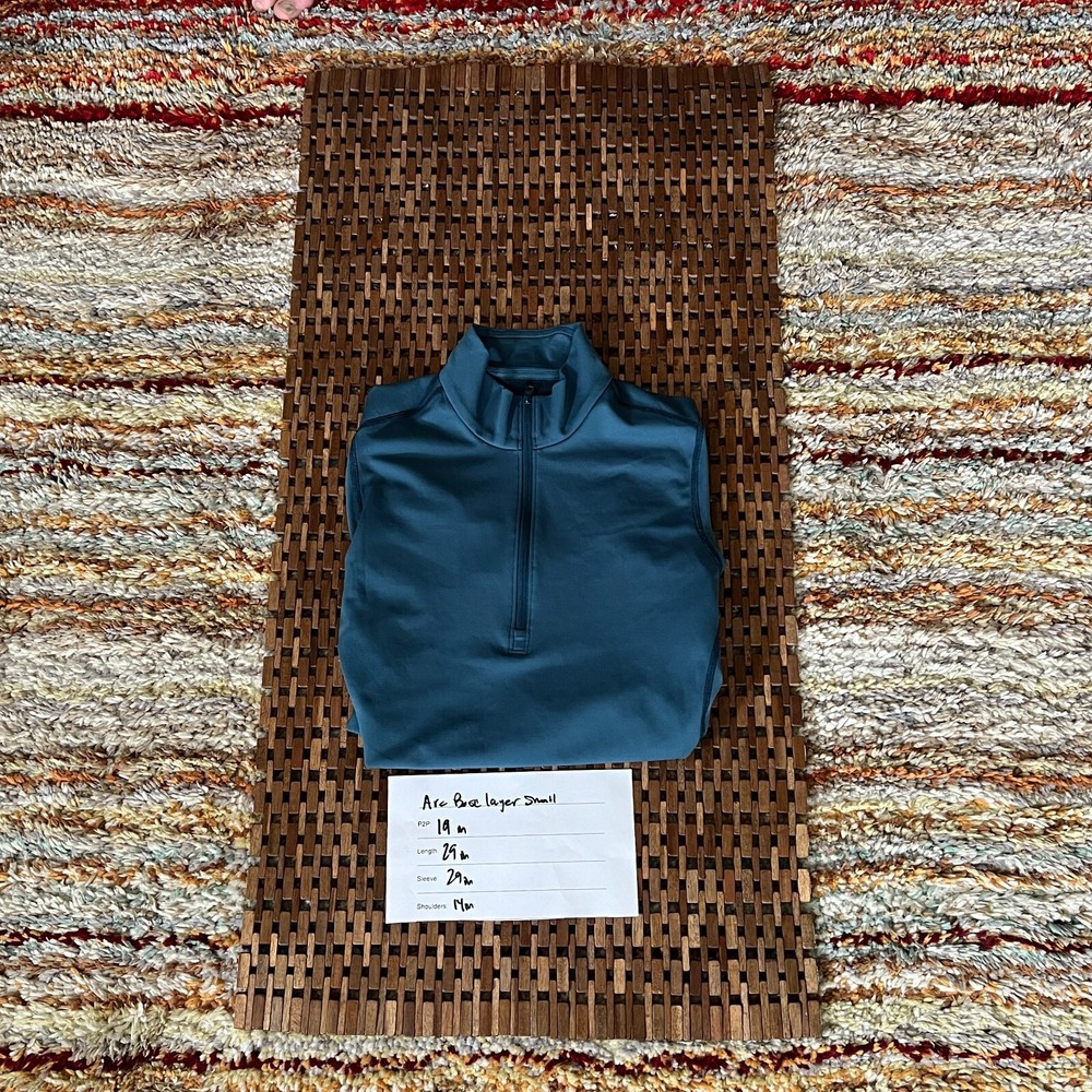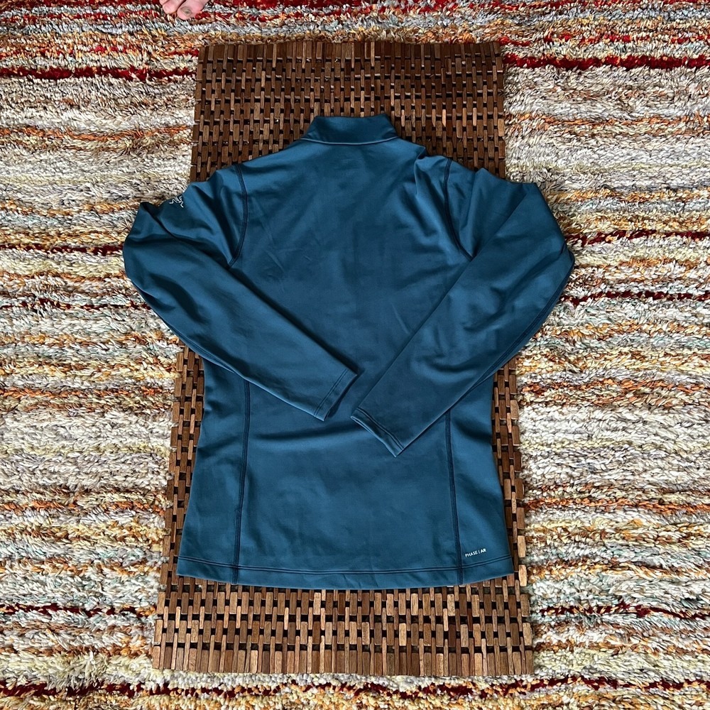 The Arc'teryx Phase AR 1/4 Zip Pullover Sweater Base Layer in Blue is a versatile activewear top ideal for outdoor activities like hiking and running. Made of polyester with a crew neck and long sleeves, this pullover offers a comfortable fit for men in size small. The 1/4 zip feature adds convenience for layering, while the solid blue color and logo accents provide a sleek and stylish look. Easy to care for with machine washable instructions, this sweater is a reliable choice for staying warm and dry during your workouts.