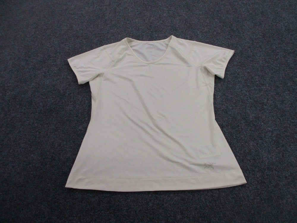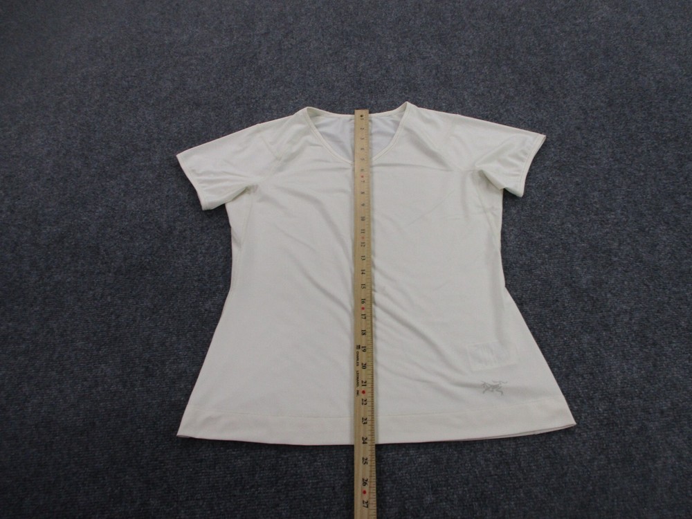 Occasion: Activewear Pattern: Solid Brand: Arc'teryx Size: M Neckline: V-Neck Sleeve Length: Short Sleeve Closure: Pullover Size Type: Regular Seller Notes: “Mark on front. Check below for full description & photos.” Material: Polyester, Spandex Features: Lightweight Style: Pullover Color: White Department: Women Type: T-Shirt
