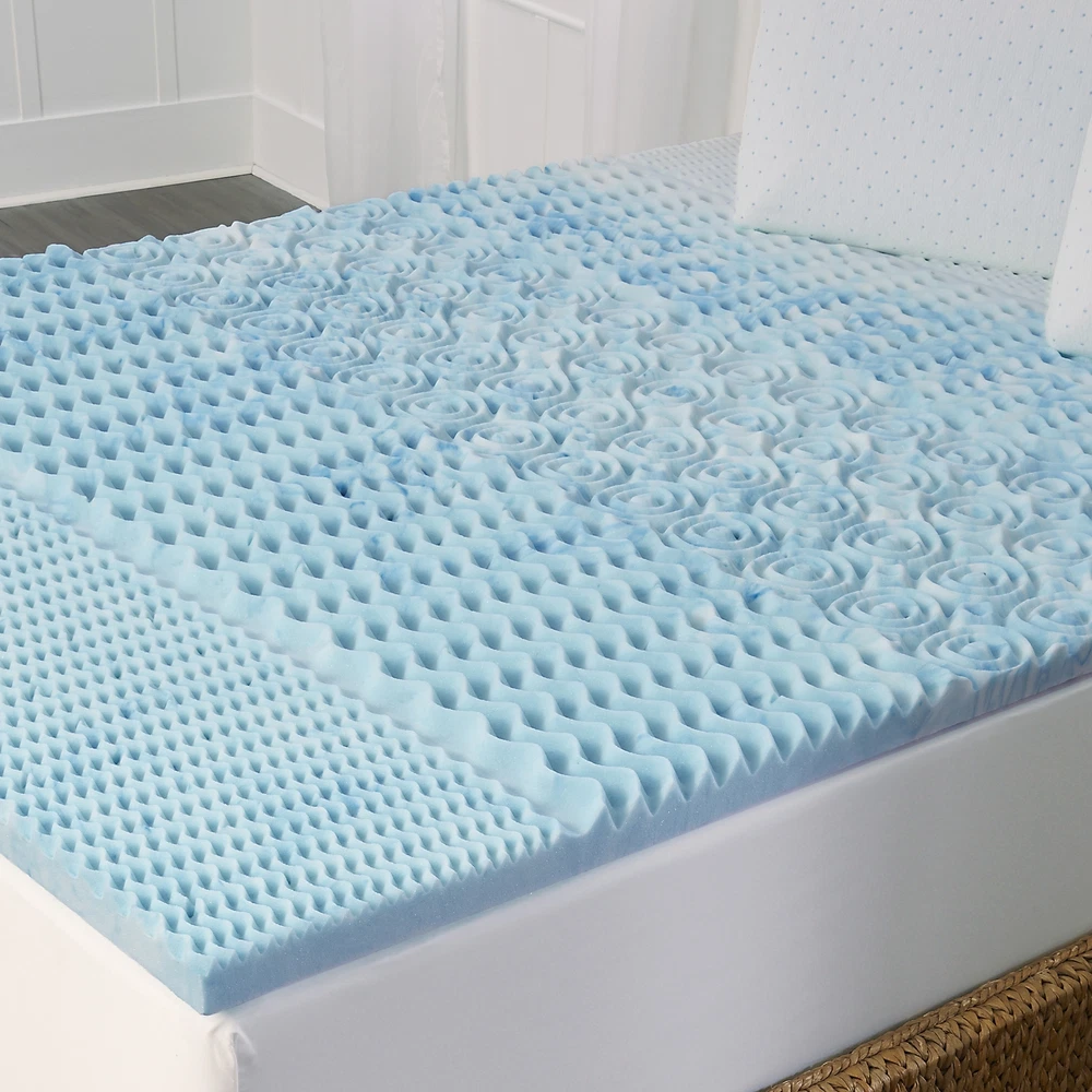 This Arctic Sleep by Pure Rest marbleized gel mattress topper offers boththe benefits of memory foam with the cooling properties of gel in this uniqueand functional mattress topper. Unlike many 'cooling' memory foam productsusing regular gel-beads that can separate and cause a mess, this specialmarbleized infusion of cooling liquid gel into the memory foam means thecooling properties of the gel foam are spread more evenly and thoroughlythroughout the topper to better help regulate the temperature while you sleep. Ifyou have a tendency to get very hot while sleeping, you can experience acooler, more inviting sleep thanks to the temperature regulating marbleized gelinfusion. The specially designed 5-zone support patterns are molded right intothe memory foam to help reduce pressure points Free Shipping Over $49.99* Details Arctic Sleep Marbleized 5-zone Gel Memory Foam Topper Product Description: This Arctic Sleep by Pure Rest marbleized gel mattress topper offers boththe benefits of memory foam with the cooling properties of gel in this uniqueand functional mattress topper. Unlike many 'cooling' memory foam productsusing regular gel-beads that can separate and cause a mess, this specialmarbleized infusion of cooling liquid gel into the memory foam means thecooling properties of the gel foam are spread more evenly and thoroughlythroughout the topper to better help regulate the temperature while you sleep. Ifyou have a tendency to get very hot while sleeping, you can experience acooler, more inviting sleep thanks to the temperature regulating marbleized gelinfusion. The specially designed 5-zone support patterns are molded right intothe memory foam to help reduce pressure points that cause tossing and turning,giving more support at higher compression levels so you get support preciselywhere it is needed. In addition, the topper is also ventilated to allow airflow and further help regulate heat build-up duringsleep. TypeMattress topper, cover not included Hypoallergenic Measures 1.5 inches thick Density:2.5-pound Comfort levelMedium Memoryfoam typeGel Care instructionsSpot clean only Afterunpacking, allow 24 hours for the topper to regain its loft Memory foam is sensitive to body temperature and changesshapes as you move to provide responsive support all night long for bettersleep Memory foam is resistant to dust mites and isnaturally antimicrobial Originally designed for NASA, thisspace age foam cradles your body, reducing pressure points that cause tossingand turning Temperature sensitive foam adjusts to your bodytemperature so you stay warm Improves circulation whilereducing pressure points that can disrupt your sleep Mattresseliminates motion transfer and uncomfortable pressure points Neverneeds turning Disperses your weight evenly Mattresscan be used with an existing frame Great for platform bedsand slatted frames Meets all flammabilitystandards Dimensions Twin:1.5 inches high x 37 inches wide x 73 inches long Full1.5inches high x 52 inches wide x 73 inches long Queen1.5inches high x 58 inches wide x 78 inches long King1.5inches high x 76 inches wide x 78 inches long Cal king1.5 inches high x 70 inches wide x 82 inches long MemoryFoam Tips: Remove from packaging within72 hours of receipt to maximize memory foam expansion. Thisproduct arrives very tightly packed. Unwrap and allow 48 hours for this productto return to its original shape. Being sealed in plasticpackaging sometimes traps odors. After unwrapping, allow product to air for afew hours. Due to machine-cutting manufacturing processes,there may be slight variances in the dimensions of this product. Dueto the nature of Memory Foam the firmness level of every item is unique. Pleasebe advised that even similar products may produce different firmnessresults. Topper dimensions may beslightly smaller than your mattress dimensions. Size has been designed to allowyou to easily secure your fitted sheet over your new memory foam topper. Pleasekeep this in mind when you place the topper on yourmattress. The digital images we displayhave the most accurate color possible. However, due to differences in computermonitors, we cannot be responsible for variations in color between the actualproduct and your screen. Click here to view mattress topper buyingguide. Once opened this product isnon-returnable.
