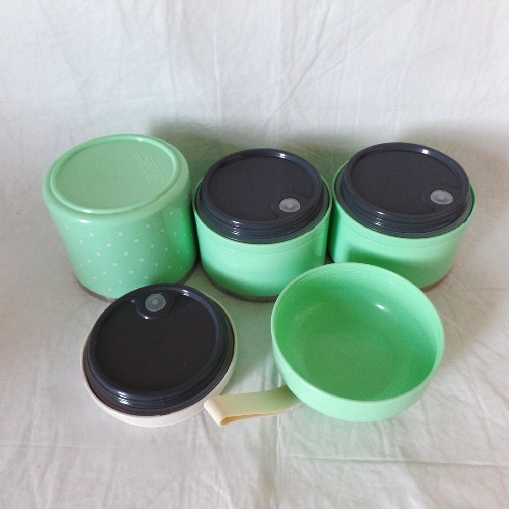 Lid Type: Screw Lid Type: Lunch Box Features: Stackable Item Height: 12 in Brand: Unbranded Item Width: 4 3/8 in Material: Stainless Steel Style: Modern Set Includes: 14 in Color: Green Capacity: 57 oz Country of Origin: Unknown Number of Compartments: 3 Seller Notes: “Great Pre-Owned Condition”