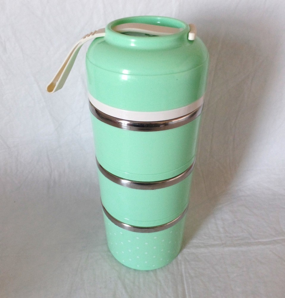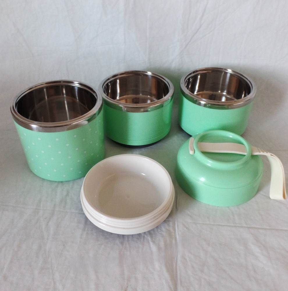 ArderLive Stackable Bento 3 Layer Lunch Box Leak Proof Stainless Steel Green Great Pre-Owned Condition Insulated to keep food hot, cold or both