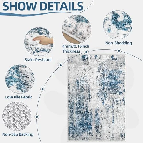Return Policy Fast Delivery Trusted seller Area Rug 4x6 Washable Rug, Modern Abstract Bedroom Rug Non-Slip Soft Neutral Area Rug Stain Resistant Throw Rugs for Entryway, Kitchen, Door Mat Indoor Entrance, Laundry(Grey Blue,4'x6') Product Description Modern Abstract Area Rug: Modern and minimalist style abstract rug brings a lively and vivid color to your space. this collection impresses with an abstract print with splashes of black, white, brown hues. Ideal for promoting a cozy and inviting feel to your space. Super Soft & Comfort: Our faux wool rugs are designed to provide the ultimate softness and comfort under your feet. It feels like walking on clouds every time step on it. The low pile design makes it easy to place under furniture and in entryways without becoming a tripping hazard. Machine Washable Area Rug: Keep your home looking pristine with easy-to-clean and machine-washable design. You no longer have to worry about spills or stains ruining your rug. Simply throw it in the washing machine. And it is also easy to vacuum. Non-slip Backing & Non-Shedding: Say goodbye to slips and slides. Our 4x6 rug features high-density non-slip backing that keeps it securely in place, which is safe for everyday indoor high traffic area from kid or pet activity. This finely crafted area rug is durable, non-shedding, and easy to maintain. Convenient Foldable Rug: Whether you're redecorating or moving, the foldable nature of this large area rug ensures easy maneuverability. Temporary creases? Just roll in the opposite direction, and allow time for the creases to relax. Shipping Returns Payment Shipping Shipping is FREE to all addresses other than APO/PO boxes in the lower 48 states. All our stock ships from US-based warehouses. Shipped via USPS or UPS (depending on location and package weight) Unless stated otherwise, all orders will ship within 24-72 hours of your payment being processed. Check our feedback to see the great reviews of FAST shipping we offer. Returns Seller does not accept returns Payment We currently accept payment via eBay managed payments only. Once payment is cleared, we will dispatch your shipment within 1-3 business days. Please refer to the "Shipping" tab for more information regarding shipping speed to your destination.