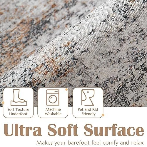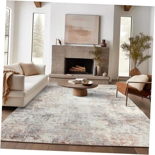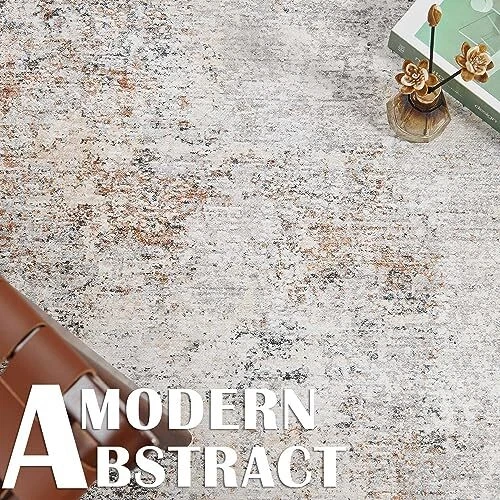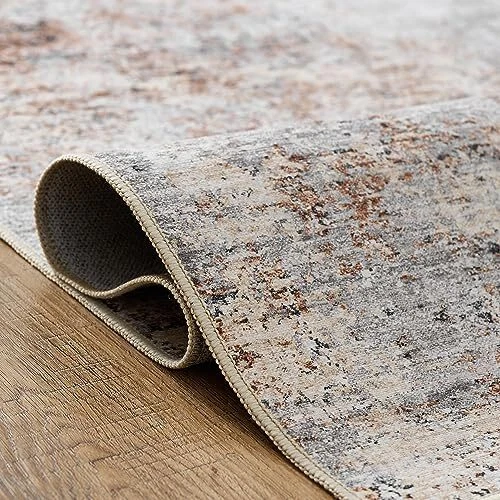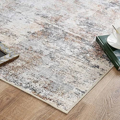 Area Rug 6x9 Washable Rug Modern Rug Abstract Floor Mat 6'x9' Distressed Taupe