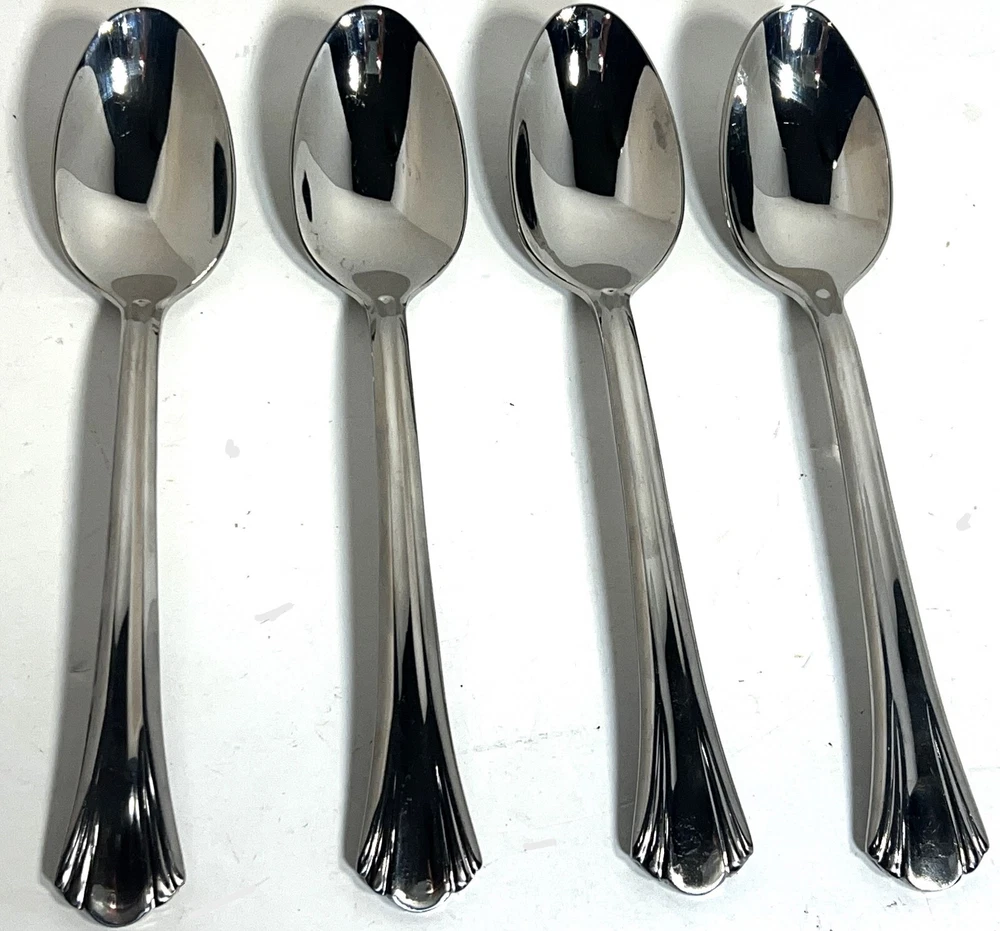 Lot of 4 Argent Orfevres GERTRUDE Hampton Silversmith Stainless Steel 8" Long Dinner/Soup/ Tablespoon/Table Spoons.