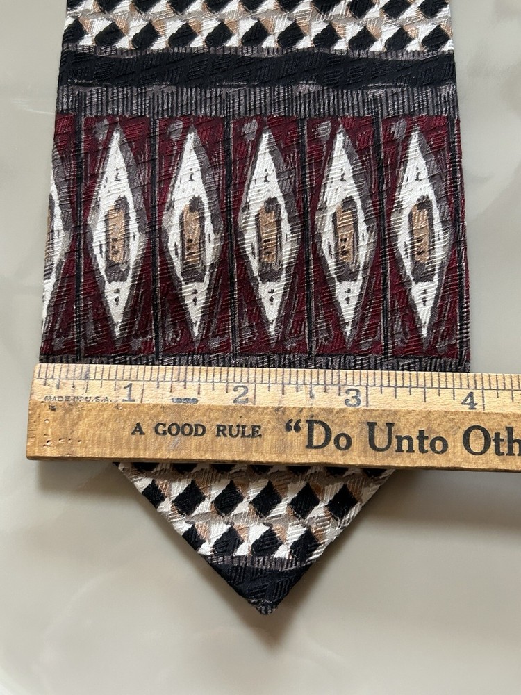 Argyle Geometric Handmade Silk Necktie in Black White Burgundy USA