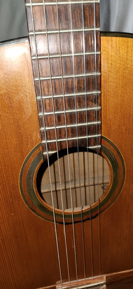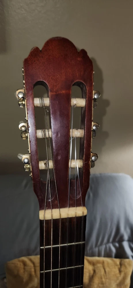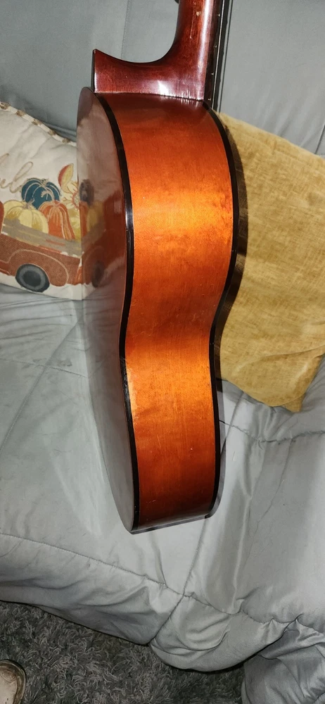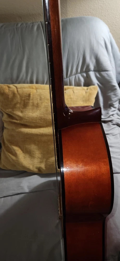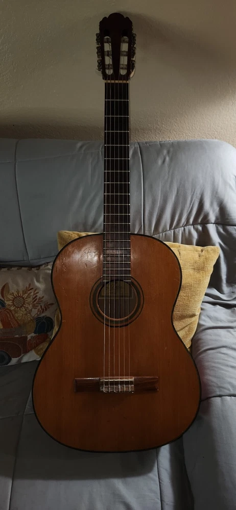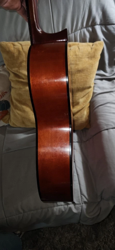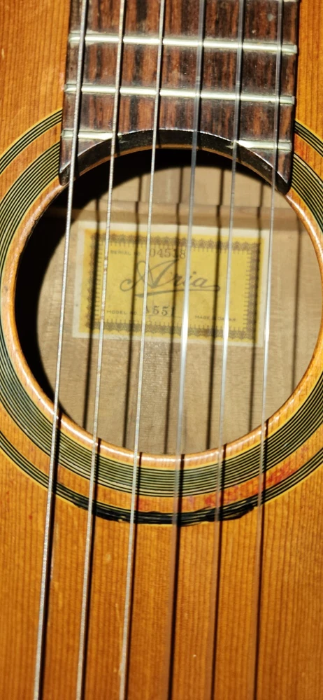 This Aria A551 Sweet Guitar is a vintage acoustic classic with a Dreadnought body type and a 4/4 size. The body is made of Mahogany and has a beautiful brown color. The neck is made of Maple and has 20 frets. The guitar has a 6-string configuration and a performance level of Intermediate. The guitar is right-handed and has a Classic series. It was made in Japan and has a serial number of #04518. This guitar is perfect for any musician who is looking for a high-quality acoustic guitar. It is a great addition to any collection and is sure to impress. Minor signs of use, please use pictures as your guide. Plays and sounds excellent.