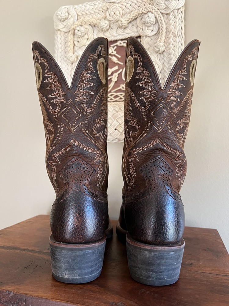 This is a really nice pair of Ariat boots called the Heritage Roughstock. They are used, but are clearly still in great condition. A handsome and tough pair of cowboy boots for sure! These are men's size 9D and I'd say they are true to size as compared to my Nocona and Luchese boots for reference. They are about 13'' tall overall, with a 2'' heel. No original box. All sales final, no returns. Thanks for looking!