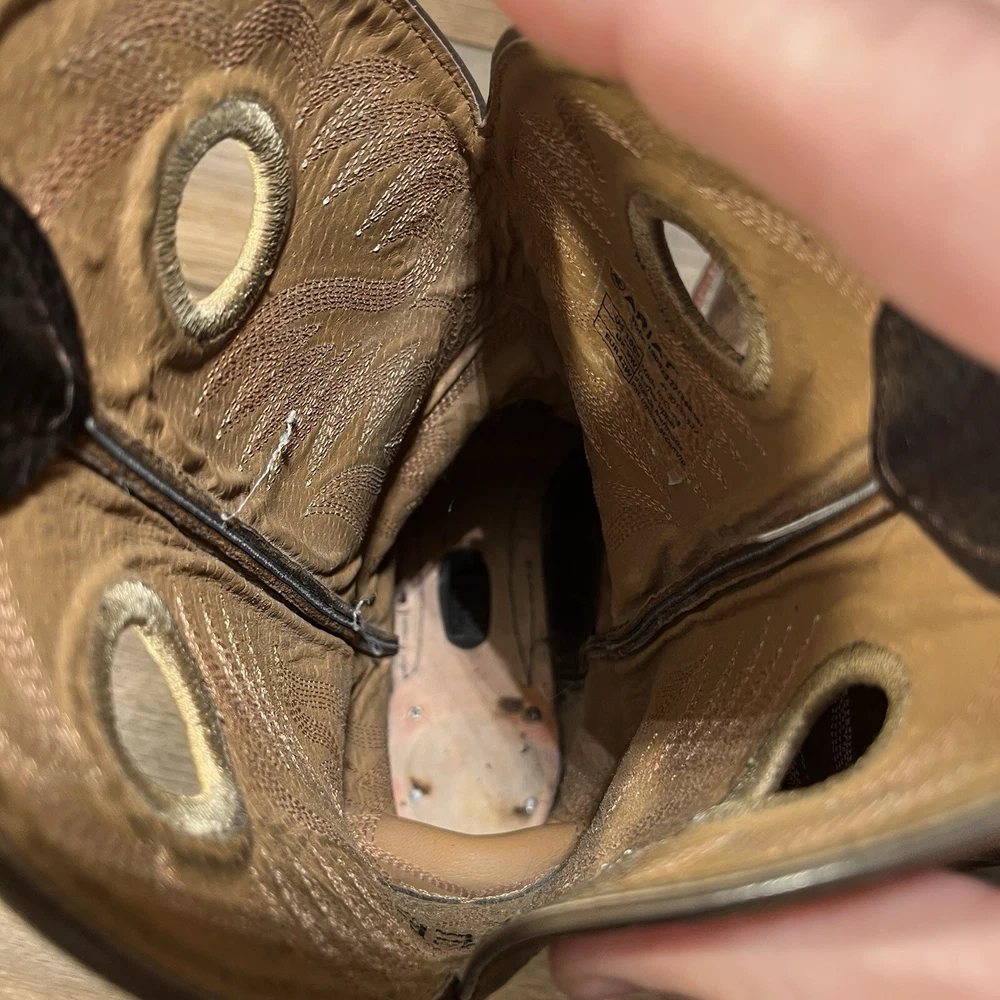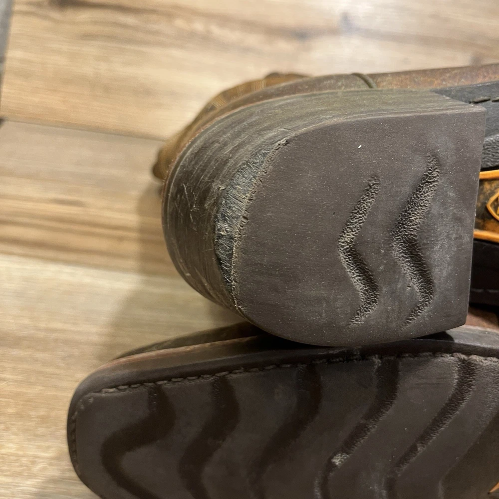 Used but still in pretty good condition overall. A little bit of scuffing and dirtying and a little wear to the tread but nothing too bad. Biggest issue is that the insoles are missing. Please see pictures for specifics. Let me know if you have any other questions or want more pictures and I'd be happy to help. Thanks for checking out my item!