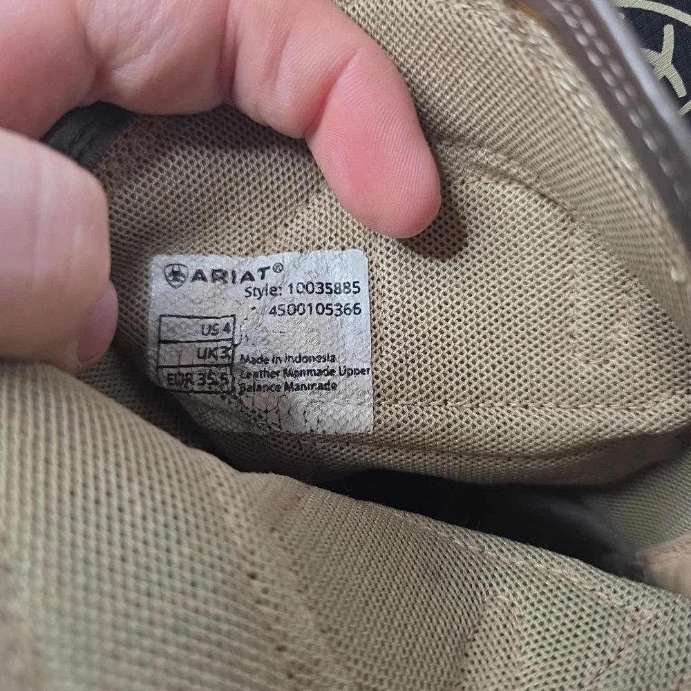 Brand: Ariat Type: Boot Department: Boys US Shoe Size: 4 Color: Brown Character: Boots Country of Origin: China Style: Western