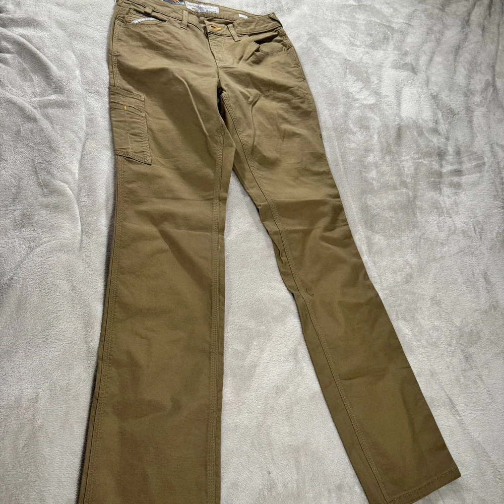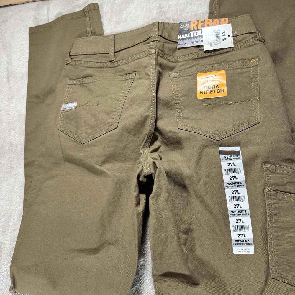 Upgrade your western or work wardrobe with these Ariat® Ladies Rebar DuraStretch Made Tough Field Khaki Pants. These pants come in size 27L and feature a button closure with belt loops. The 5-pocket design with side leg pocket accents and slim fit provide both style and functionality. Crafted from durable canvas fabric, these pants are perfect for all seasons and can be easily maintained with machine washable garment care. The solid brown color and mid-rise design add to the versatility of these jeans. Get your hands on the 2020-2029 model of these Ariat® jeans and make a statement in your field or western setting.