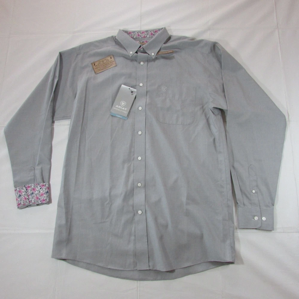 Brand new with tags Men's Size Brand: Ariat Color: Harbor Mist Long Sleeve Wrinkle Free Solid Pinpoint Oxford Button Up Shirt Top Approx Measurements: (Chest x Length) Large Tall - 24.5" x 35" XL Tall - 26" x 35"