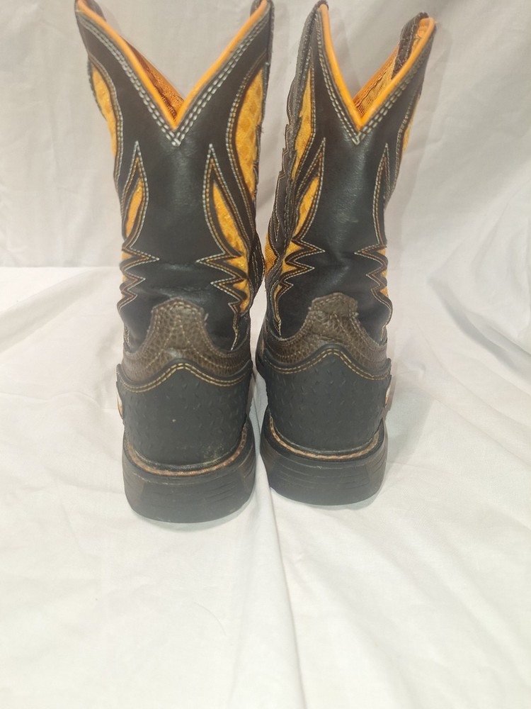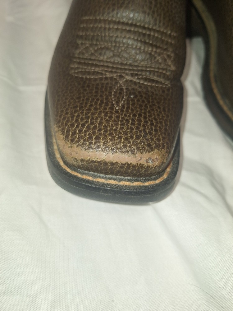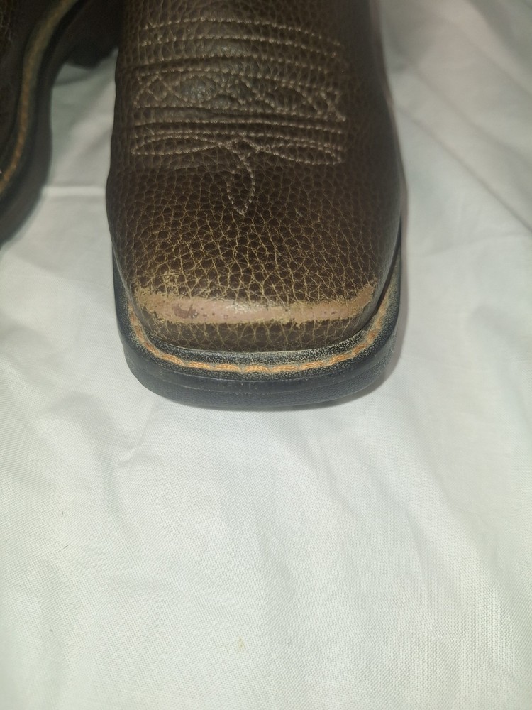Good shape The Ariat Work VentTEK Boot in Cocoa Brown, size 4, is a stylish and durable boot designed for boys. With a Western style and a comfortable fit, these boots are perfect for everyday wear or outdoor activities. Made by the reputable brand Ariat, these boots are sure to provide support and protection for active young boys. The rich cocoa brown color adds a touch of sophistication to any outfit.