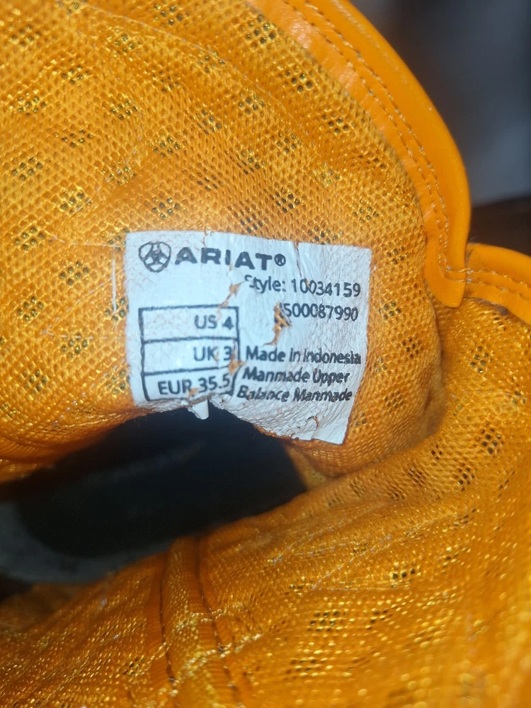 Country of Origin: Indonesia UK Shoe Size: 36.5 Character: Boots Type: Boot Department: Boys US Shoe Size: 4 Color: COCOA BROWN Style: Western AU Shoe Size: 4 Brand: Ariat Product Line: Ariat Work VentTEK