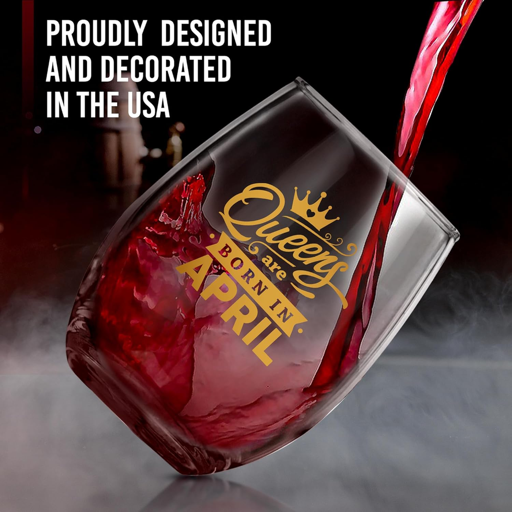 Store New Arrivals Add to Favorite View Feedback Contact Fast deliveries to the customer's home Quality customer service John Make the customers happy! Queens Are Born in April - 21 Oz Stemless Wine Glass - Aries and Taurus Birthday Gifts for Women - Happy Birthday Queen Gifts for Moms, Best Friends, Sisters, Wife Description APRIL BIRTHDAY QUEEN: The best gift for the 21st, 30th, 40th or 50th, or any other momentous birthday, for women born in April, under the astrological / zodiac sign of Aries or Taurus. This is a unique zodiac sign gift for your wife, sister or girlfriend celebrating their birth month! EXQUISITE APRIL BIRTHDAY GIFT FOR WOMEN: This is an excellent funny birthday present for a true Queen, mom, sister, friend, relative, or coworker. If you are not fully satisfied with our unique April gifts for women, we offer a money-back guarantee so that you can buy these zodiac sign wine glasses with confidence. WINE GLASS CAPACITY: This large stemless "Queen's Birthday" wine glass holds a generous 21 ounces, making it perfect not just for wine, but for a variety of creative uses. Decorated with gold metallic ink, this delightful gift is sure to put a smile on the Birthday Queen's face. Show your love and wish them a happy birthday with this lovely wine glass, crafted to last for many celebrations to come. QUALITY ARIES OR TAURUS ZODIAC GIFT: Our unique, funny stemless wine glasses are manufactured and decorated in the USA to the highest standard to provide satisfaction for years to come. Its production has undergone strict quality control to ensure that its suitable for long-term use. Our ink is non-toxic, eco-friendly, fired at over 1200 degrees for maximum durability. CRAFTSMANSHIP: Our novelty glasses are decorated in a family-owned workshop, ensuring each piece is crafted with care and attention to detail. Each wine glass undergoes a thorough inspection and is expertly packed to guarantee that your special Queen's birthday gift arrives in perfect condition. This meticulous process reflects our commitment to quality and excellence, making each glass a cherished keepsake. Product Description Technical Specifications Where Glassware made in USA, printed and decorated in the USA. Restaurant quality, heavy bottom stemless wine glasses. Durability High quality, heat treated glassware, built to last through multiple washings and use. Dishwasher Safe Yes, but hand washing recommended if using harsh detergents. Decoration Method High quality, food-safe inks, fired on at over 1200 degrees, will not crack, peel or fade. Size Generous 21 oz wine glass, holds 40% more than most other competitor wine glasses. PREMIUM STEMLESS WINE GLASS The bowl-shaped stemless design of our wine glass enhances wine flavors that allow you to have a superior drinking experience and enjoy your glass down to the very last sip. In addition, the shape provides more stability which may reduce the risk of spilling your choice of beverage. ELEGANT DESIGN Our wine glass collection features a classy and elegant design printed with high-quality, metallic ceramic inks with superior, built-to-last quality. It is indeed a lovely design that reflects the elegance and sophistication of a true Queen. MULTI-PURPOSE This is ideal for everyday use and is a great gift for many occasions like Birthdays, Engagement/Dinner Parties, Christmas, Wedding Events, and many more. It can also be a perfect addition to your table setting or barware collection. Durable Heat-Treted Wine Glass Buy high-quality, American-made glassware with no lead or harmful additives and printed with food-safe, non-toxic inks. Moreover, these glasses are heat-treated for additional durability. Size and Capacity Our wine glasses hold a generous 21 ounces, which holds 40% more liquid than most competing wine glasses (15 ounces). It has a nice sturdy size suitable for many uses and is ideal for any wine (Cabernet Sauvignon, Bourdeaux, Merlot, Chardonnay, Pinot, or Riesling), cocktail, juice, and soda. Basically, your choice of any beverage. The wine glass is versatile and can even be used for yogurt parfaits, candle holders, and many more. The Perfect Gift for Every Woman's Occasion Need a great present for the Wine Enthusiasts in your life? This stemless wine glass makes the perfect gift to celebrate special occasions and a loved one's achievement while also welcoming a new stage of their life. Treat them to this valuable gift that can surely make them feel loved and appreciated. We also offer Queens-designed wine glasses for every birth month, so you can treat all the women in your life to one of these sophisticated stemless wine glasses that can be used all year round. Main Features 40% Larger Than Competitor Glasses Our novelty A Queen Was Born-themed birthday wine glasses are bigger than the ordinary wine glasses sold in the market. So you can surely make the most out of your every drink. Vibrant Metallic Ink It is printed with high-quality, gold metallic ink that is up to the highest standard. In addition, the metallic ink is fired onto the glassware for permanent application to withstand years of use. Proudly Made & Decorated in the USA Our unique birthday stemless wine glasses are manufactured and decorated in a family-owned workshop in the USA . These are individually inspected and expertly packed with care to ensure that they will arrive in excellent condition. Dishwasher Safe These are dishwasher safe, but it is recommended to clean them often by hand washing , especially if used with harsh detergents to preserve the vibrancy of the finish. Item model number 4636 Style Modern Number of Items 1 Pattern Letter Print Country of Origin USA Embellishment Metallic Gold Ink Theme Zodiac Unit Count 1.0 Count Product Dimensions 3.75"W x 4.5"H Age Range (Description) Adult Finish Type Metallic Gold Ink Specific Uses For Product Cold Drinks, Hot Drinks Reusability Reusable Customer Package Type Standard Packaging Item Weight 7.8 ounces Material Feature Heat Resis