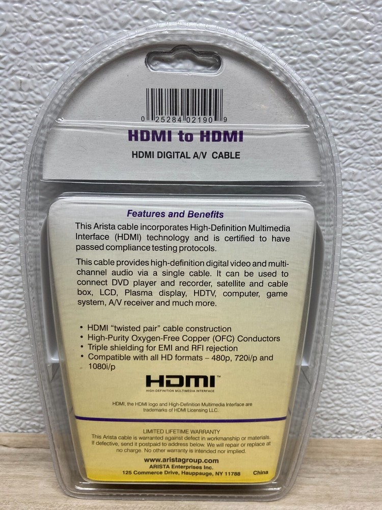 Arista 18' HDMI Cable Conect DVD,DVR ,Satellite and cable box,HDTV , game system.New-sealed-no defects WE OFFER COMBINED SHIPPING AND MULTI-ITEM PURCHASE DISCOUNTS.IF YOU HAVE ANY QUESTIONS, PLEASE LET US KNOW