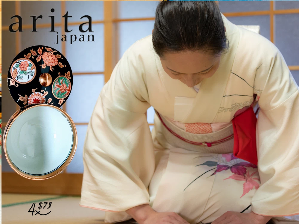 Arita Ware Tea Cup With Lid 4-Piece Set Black and Gold.NEW.