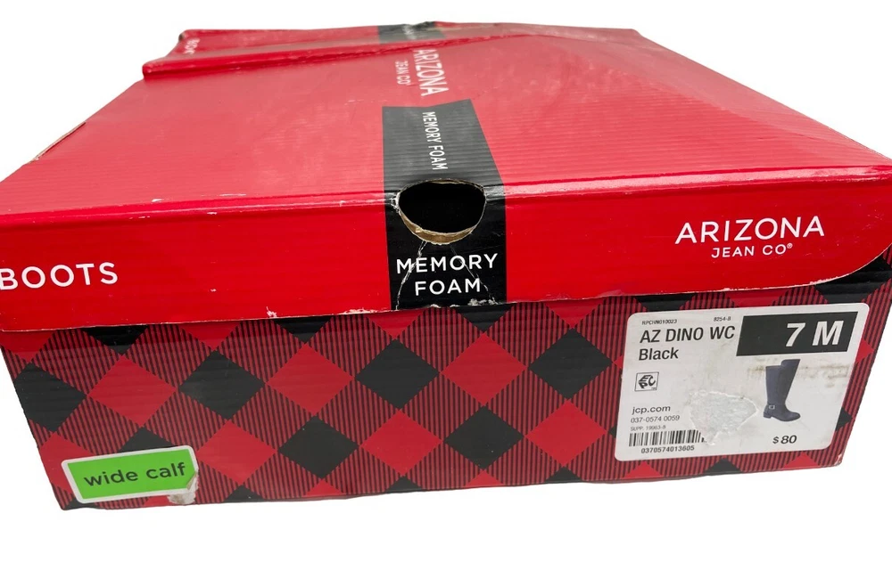 Upper Material: Faux Leather Color: Black Character: Boots Type: Boot Brand: Arizona Jean Co Heel Style: Block Shoe Width: M US Shoe Size: 7 Heel Height: Low (1-1.9 in) Occasion: Business, Casual, Party/Cocktail, Travel, Workwear Toe Shape: Round Toe Calf Width: Wide Theme: American, Equestrian, Modern Model: Denver Features: Comfort, Lightweight, Memory Foam Accents: Buckle Pattern: Solid Department: Women Shoe Shaft Style: Knee High Closure: Zip Style: Riding Boot