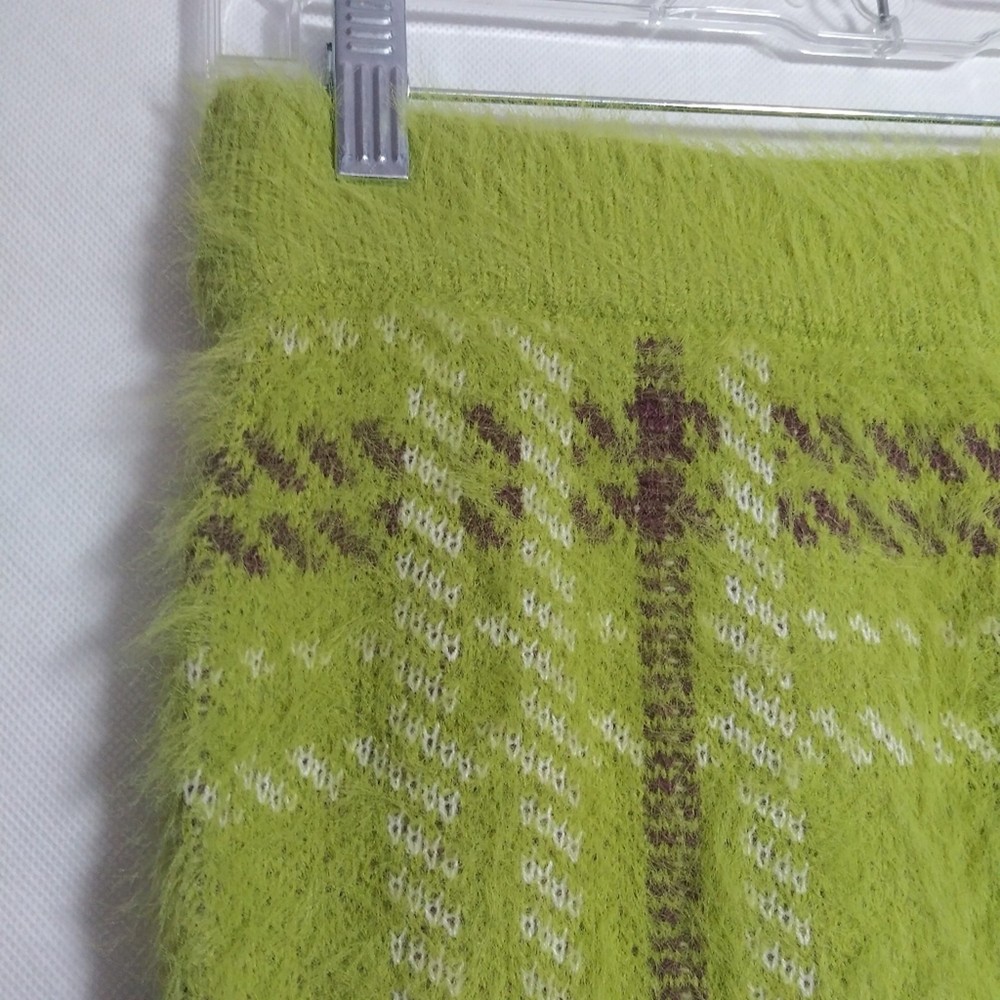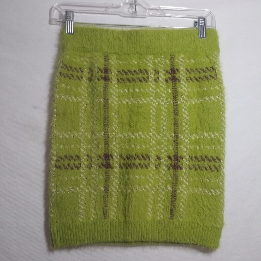 Arizona Green Plaid Mini Fuzzy Skirt Party Size Small Green plaid Mini Stretchy Fuzzy and soft Like new approximate measurements waist across 13" length 17"