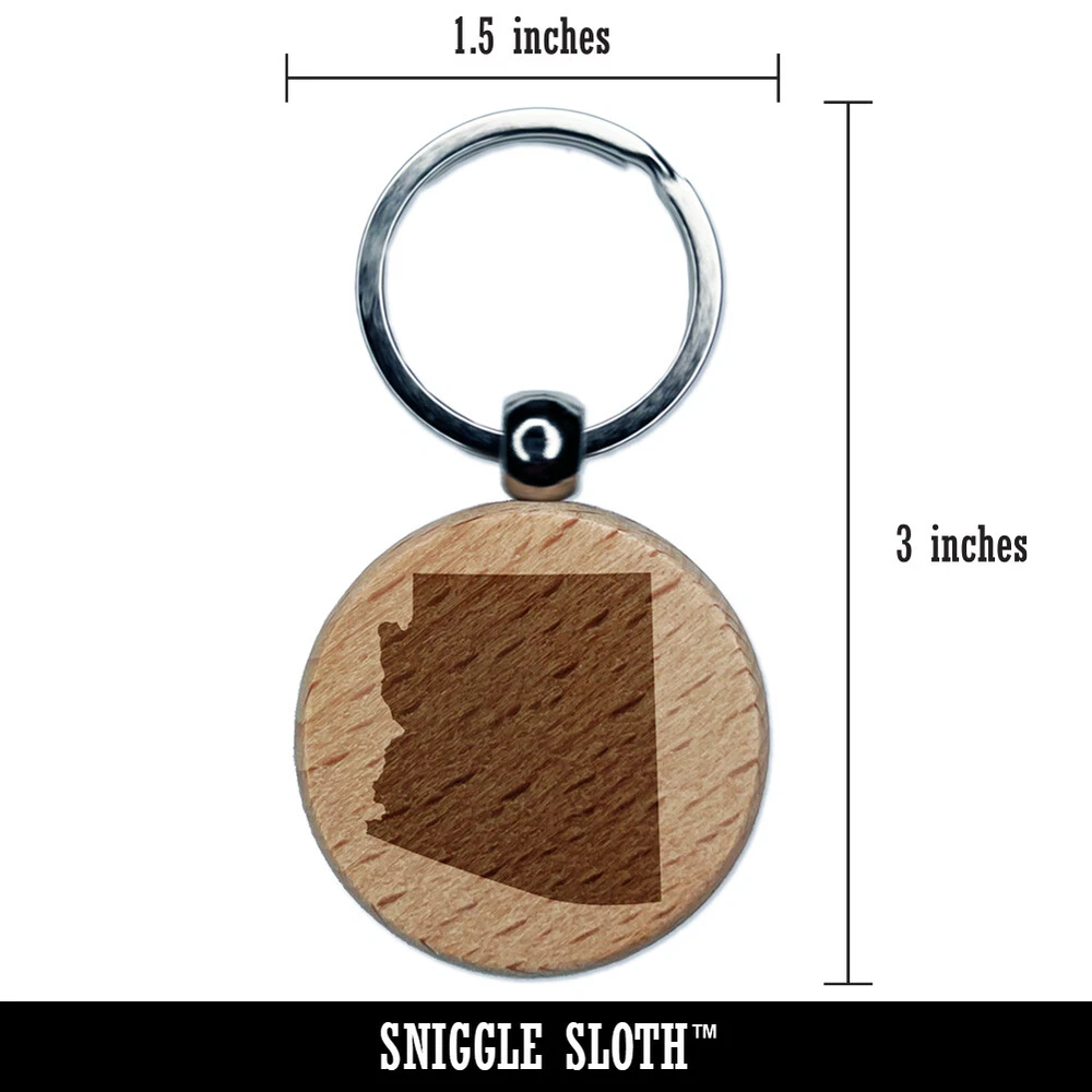 Arizona State Silhouette Engraved Wood Round Keychain Tag Charm