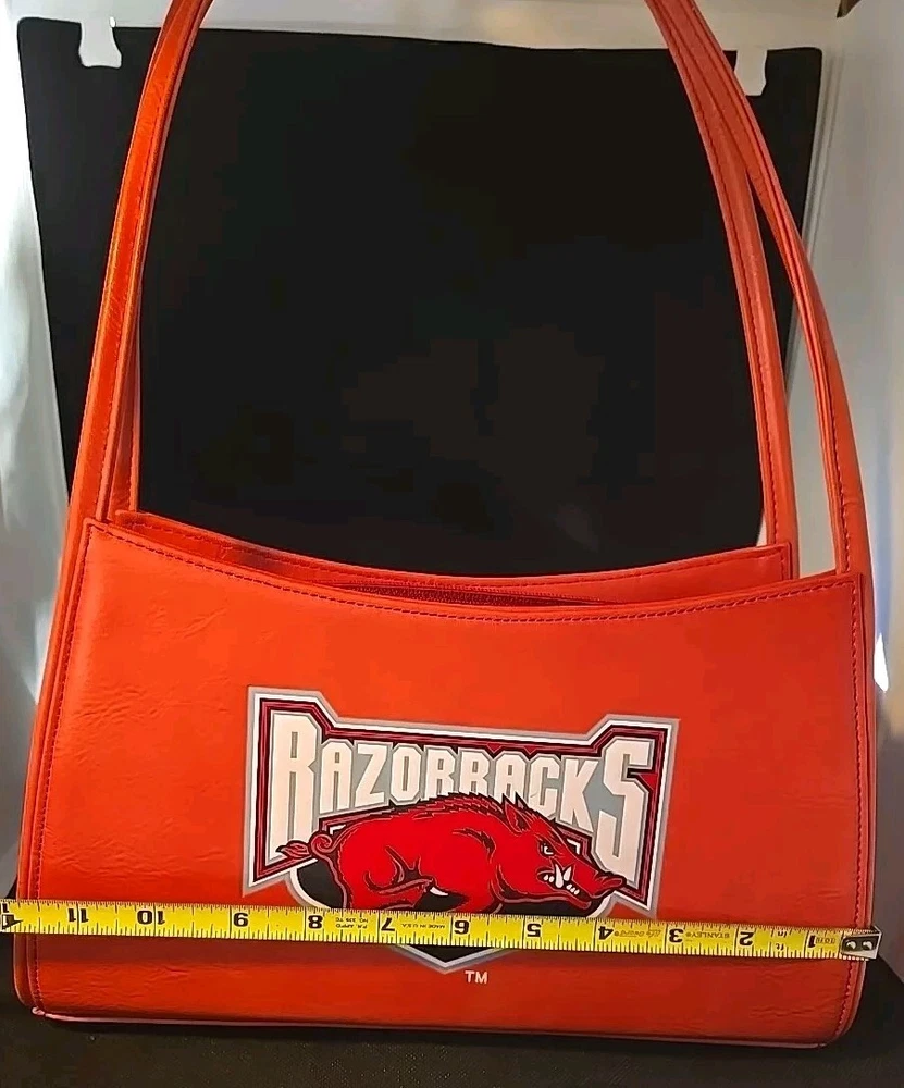 Carry your team spirit wherever you go with this vibrant Arkansas Razorbacks purse. It features a bold red design, complemented by the iconic Razorbacks graphic and logo, making it an ideal accessory for any college football fan. Crafted for both style and functionality, this purse is perfect for everyday use or for showcasing your team pride at the game. Its spacious interior and durable construction make it a practical choice, while the striking exterior ensures you'll stand out in the crowd. Whether you're headed to class, out with friends, or cheering on the Razorbacks, this handbag is a versatile addition to any fan's collection.