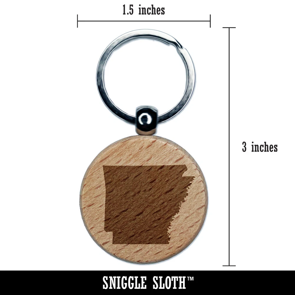 Arkansas State Silhouette Engraved Wood Round Keychain Tag Charm