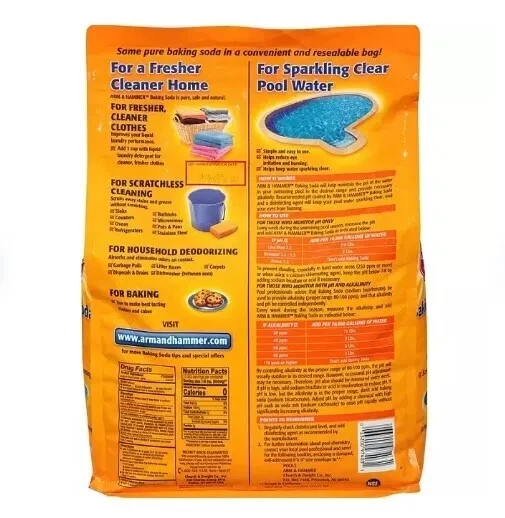 Arm & Hammer Pure Baking Soda (15 lbs.) Environmentally Sensible Product Description; Nothing compares to Arm&Hammer™ Pure Baking Soda (15 lbs). This household staple is the ultimate multitasker, ideal for baking, cleaning, disinfecting, deodorizing and more. Arm&Hammer baking soda is America's #1 trusted brand, found in more homes than any other brand for over 165 years. Arm&Hammer Pure Baking Soda: Making Its Mark Since the 1840s Arm&Hammer baking soda got its start all the way back in 1846 when two brothers-in-law began selling bicarbonate of soda to the public. Within one year, their home business became a full-blown company. By 1860, the company was sending its customers valuable tips by mail, positioning the pure baking soda for cooking using family recipes; this approach helped the company grow into worldwide distribution by the end of the century. In 1922, the company revisited its successful approach from 1860, but this time by positioning Arm&Hammer pure baking soda as a powerful cleaning agent, as well as vital for personal care. They took an even bolder step in 1927 by taking their message to the world via a series of advertisements in some of America's most popular magazines. Their efforts catapulted Arm&Hammer to the highest echelons of commercial success, making it the world's leading brand of pure baking soda, an honor that remains to this day. Pure Baking Soda for All of Your Cleaning, Disinfecting and Deodorizing Needs Baking soda is natural and gentle on everything from clothing to tooth enamel. It cuts through grease and stubborn stains without scratching chrome, glass or tile surfaces, absorbing and eliminating odors as it cleanses. Arm&Hammer baking soda's stain-fighting power made it a natural addition to toothpaste and laundry detergent. The brand even introduced baking soda-packed versions of both to the commercial market in the 1970s and 1980s. How Do You Use Baking Soda To Clean Clothes? People have been using baking soda for clothes for well over a century, for everything from removing stubborn stains to fighting odors without added fragrance. Baking soda can be blended with water or hydrogen peroxide as an alternative to bleach as well as added to powder detergents to boost overall efficacy. This resealable pouch contains 15 lbs of of Arm&Hammer pure baking soda for multiple uses throughout the home.
