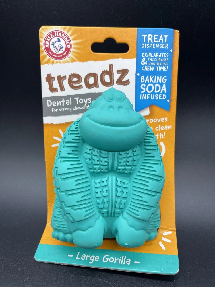 Arm & Hammer Treadz Gorilla Dental Chew Toys for Dogs Large Baking Soda Infused Treat Dispenser New in Package FAST Shipping!