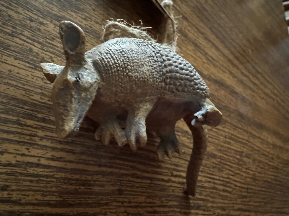 This ornament is unused. it is a realistic looking armadillo. The way the tail hangs down, you cannot just sit him on a shelf. Nonsmoking home. Great for a Texas themed tree. I have 2 for sale. One has the tag on it and one does not. Both in good condition. This is for one of them.