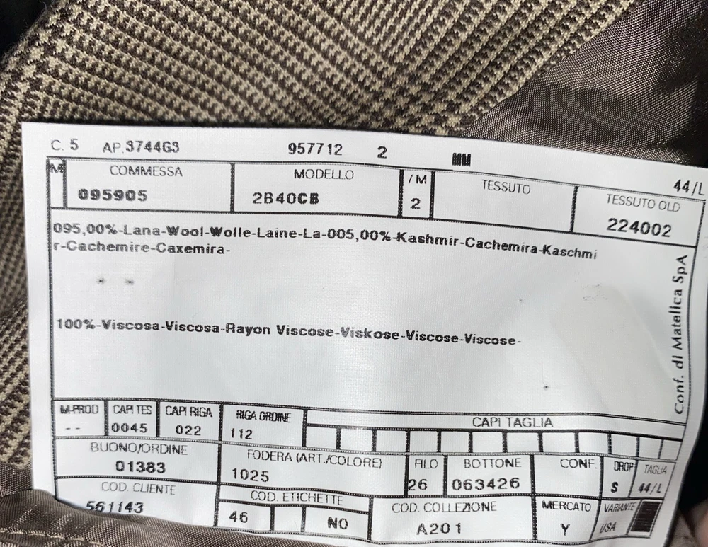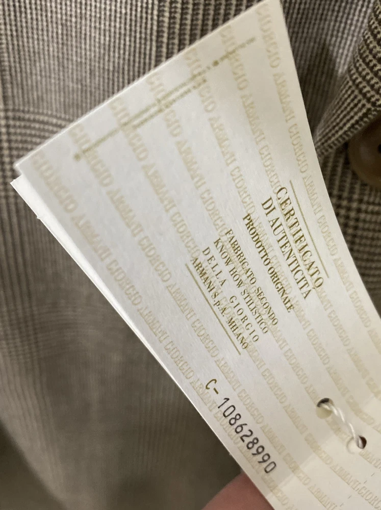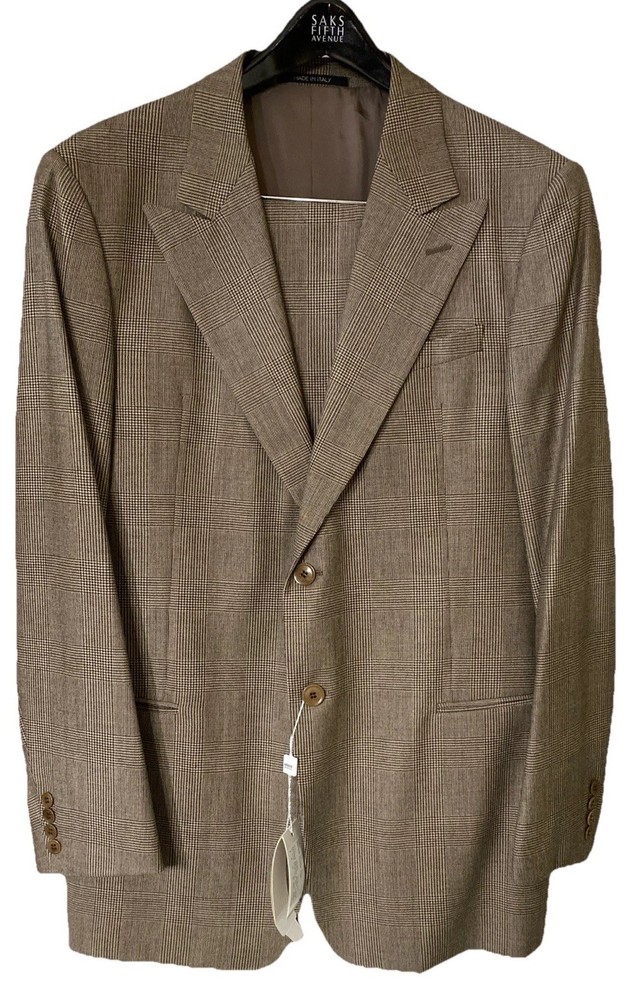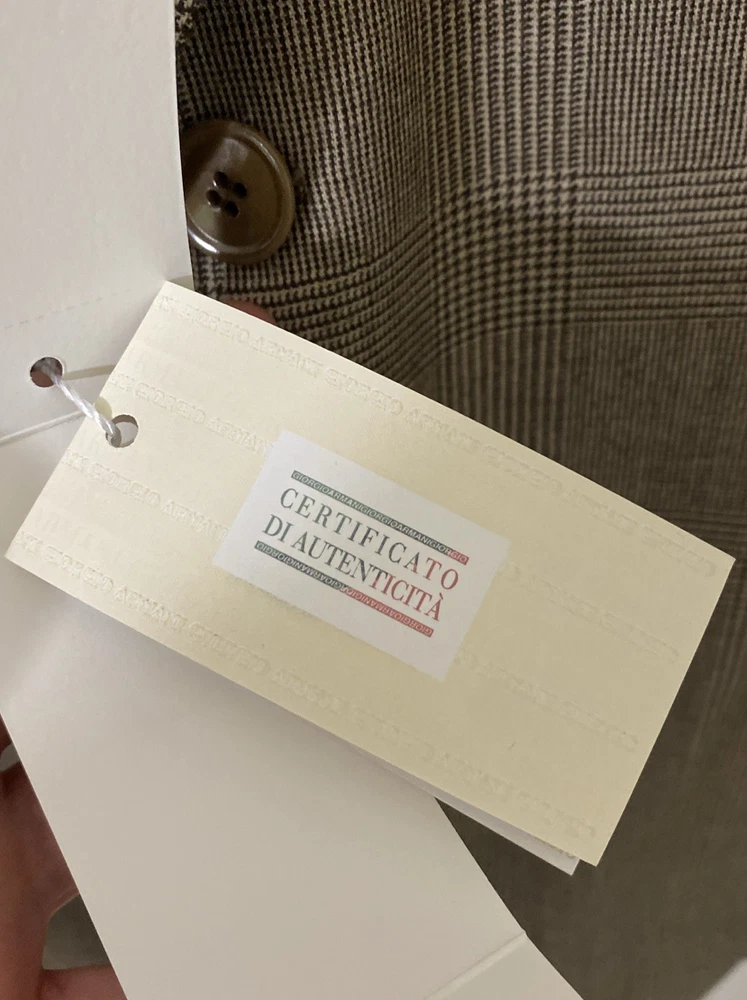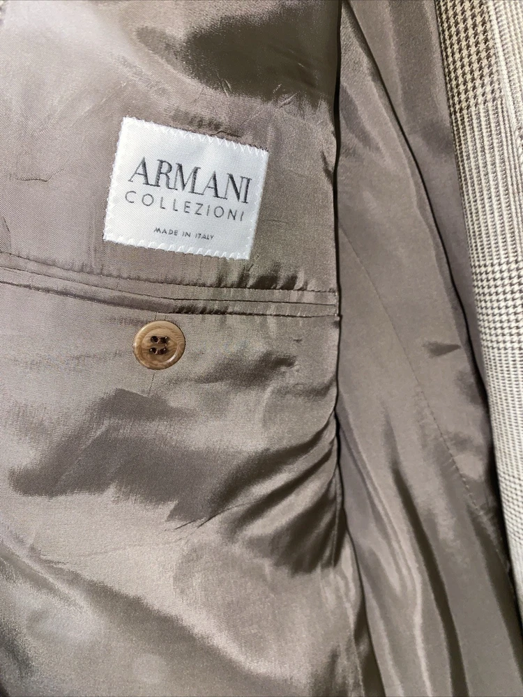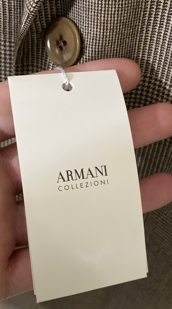 Armani Collezioni Suit in 44L, made in Italy and new with tags, hanger, and garment bag. Pants measure 36x32. Please review all photos. In new condition. 95% Virgin Wool and 5% Cashmere. Feels very nice and high quality.