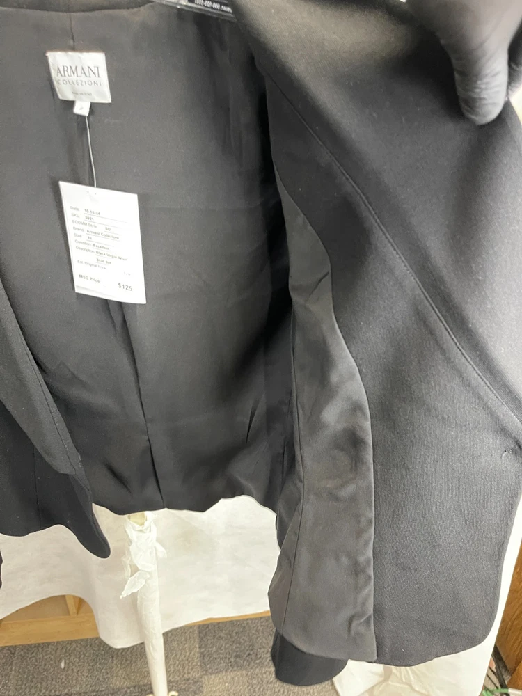 Armani Collezioni Black 2-pc Wool Skirt Suit 10 Brand: Armani Collezioni Overall Condition: Excellent condition. See pictures for details. Material: Wool and polyester lining Shipped with USPS Priority or Flat Rate, or if possible First Class Mail. Description: 2pc skirt suit, one button short, long sleeve blazer, skirt is a back zip elastic waist flared lower. Details for Shopper Shoulder: 16 inches Sleeve: 25 inches Bust: 19 inches Waist: 20 inches Length: 20 inches in the front, 22 inches in the back. Skirt: 32 inch waist, 24 inch length. Payment Policies We accept payment through PayPal, credit card, and debit card. Please note that the item may be relisted if payment is not received within the 10 day period. Shipping Policies Delivery estimates will be displayed at checkout. In-store pickup is also available if you would like to visit us in store. We ship to Continental United States only. Terms of Sale Each item we sell is unique. There are no exchanges for the same item available. All items are carefully inspected by My Sister’s Closet of Monroe County’s quality control team prior to shipping. Please carefully review item details. If you have questions, please message us regarding the item before purchasing. Note: Due to the different monitor and light effects, the actual color of the item shown might be slightly different from the color in pictures. Return Policy We strive to describe and measure our items accurately. If your order is not what you expected, we accept returns under the following conditions: The item was not as described as listed The wrong item was shipped. The item does not fit. If the wrong item was shipped, we will attempt to replace it with the item originally ordered. Please note - items not returned in the exact same condition, with tags attached, may be subject to a partial refund to account for loss of the item’s value. Please refer to eBay Return policy for more details. You are covered by the eBay Money Back Guarantee if you receive an item that is not described as listed. Return Requirements: The buyer must return the item within 30 days of receipt. Buyer is responsible for return shipping charges. The item(s) must be returned in the original condition, unworn, with tags attached. Thank you for shopping with us! A little bit more about us… My Sister’s Closet is a nonprofit serving women in poverty since 1998. Our mission is to help women move closer to economic self-sufficiency by providing essential career development tools. This includes job training, mentoring, advocacy services, and professional attire for job interviews to help them find employment. We have helped over 2800 women thus far. Most clients we serve have been dealing with homelessness, domestic violence, illness, divorce, job loss, economic recovery and/or lack basic education. Visit Our eBay Store