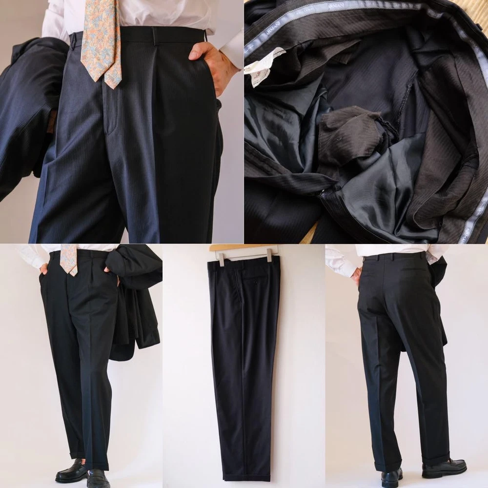 Armani Collezioni Black Wool Suit 52 Shadow Stripe Formal Used Key Features - **Product Description:** Armani Collezioni men's suit by Giorgio Armani, Italy's renowned luxury fashion house. This formal suit features a smooth, soft shadow stripe wool fabric, ideal for weddings, funerals, and business occasions. Classic yet versatile, it’s perfect for a sophisticated wardrobe. - **Features:** Color: Black Material: 100% Wool Size: 52 - **Condition:** Used with minimal signs of wear, no noticeable damage. - **Item Specifics:** Brand: Armani Collezioni Type: Suit Material: Wool Color: Black Size: 52 Season: All-season Specifications Brand Armani Collezioni Country Japan Product Description Description Thank you for your interest. This item is not new, but a used item that was given away. Please check the photos for the condition of the item. Please understand that the condition of the item is subjective and the standard of evaluation and feeling may vary from person to person, so please be aware that this is a used item before bidding. Please check the photos for the condition of the item, such as scratches and stains. To prevent problems, please feel free to contact us if you have any questions about the size or other details of the item. We will be happy to adjust the price. We will do our best to ship your order as soon as possible. We will do our best to ship as soon as possible, but there may be delays during the busy harvest season. Remarks All the products we sell are obtained and sold by pawn shops that are authorized brands, so all the products we handle have been authenticated to meet our strict standards for authenticity, so please buy with confidence. Payment Supports managed payments Please pay within 5 days after auction is finished. About Us We are located in Japan. It's our pleasure to make you happy by proposing our recommend item. If you have any questions or request about items, please feel free to ask us. International Buyers - Please Note: -Importduties, taxes, and charges are not included in the item price or shipping charges. These charges are the buyer's responsibility. -Please check with your country's customs office to determine what these additional costs will be prior to bidding/buying. -These charges are normally collected by the delivering freight (shipping) company or when you pick the item up - do not confuse them for additional shipping charges. -We do not mark merchandise values below value or mark items as - gifts - The US and International government regulations prohibit such behavior. Thank you for your understanding
