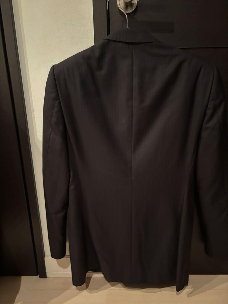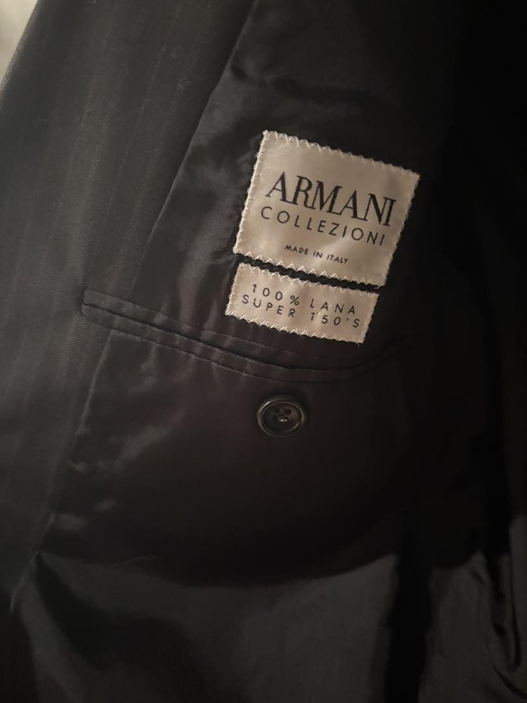 This Armani Collezioni suit jacket is pure luxury! The Super 150's wool feels incredibly soft yet structured, perfect for business or formal events. The double-breasted cut gives a sharp, tailored look while the dark gray stripe adds subtle sophistication. Fits true to size with clean lines—definitely elevates any outfit. Even as pre-owned, it's in flawless condition. Worth every penny for that premium Italian craftsmanship!