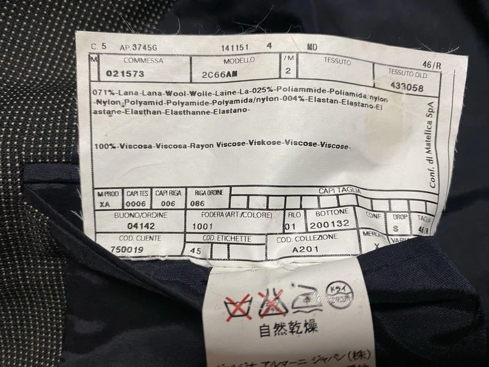 Armani Collezioni Men's Italy Suit Set Formal High-Quality Used Key Features - **Product Description:** Armani Collezioni men's suit set, made in Italy. This high-end brand is second only to Giorgio Armani within the Armani lineup, known for its exceptional tailoring and formal wear focus. Crafted from premium wool, it offers superior comfort, appearance, and durability. The suit features a 3-button, no-vent jacket with full lining, in a stylish gray color. Size 46/R XL, with minimal signs of use and no damage. A rare, discontinued piece with lasting elegance. - **Item Specifics:** Brand: Armani Collezioni Type: Suit Set Model/Name: Not specified Color: Gray Material: Wool Size: 46/R XL Jacket Style: 3-button, no vent, full lining Condition: Excellent, minimal signs of use, no stains or damage Specifications Brand Armani Collezioni Country Japan Product Description Description Thank you for your interest. This item is not new, but a used item that was given away. Please check the photos for the condition of the item. Please understand that the condition of the item is subjective and the standard of evaluation and feeling may vary from person to person, so please be aware that this is a used item before bidding. Please check the photos for the condition of the item, such as scratches and stains. To prevent problems, please feel free to contact us if you have any questions about the size or other details of the item. We will be happy to adjust the price. We will do our best to ship your order as soon as possible. We will do our best to ship as soon as possible, but there may be delays during the busy harvest season. Remarks All the products we sell are obtained and sold by pawn shops that are authorized brands, so all the products we handle have been authenticated to meet our strict standards for authenticity, so please buy with confidence. Payment Supports managed payments Please pay within 5 days after auction is finished. About Us We are located in Japan. It's our pleasure to make you happy by proposing our recommend item. If you have any questions or request about items, please feel free to ask us. International Buyers - Please Note: -Importduties, taxes, and charges are not included in the item price or shipping charges. These charges are the buyer's responsibility. -Please check with your country's customs office to determine what these additional costs will be prior to bidding/buying. -These charges are normally collected by the delivering freight (shipping) company or when you pick the item up - do not confuse them for additional shipping charges. -We do not mark merchandise values below value or mark items as - gifts - The US and International government regulations prohibit such behavior. Thank you for your understanding