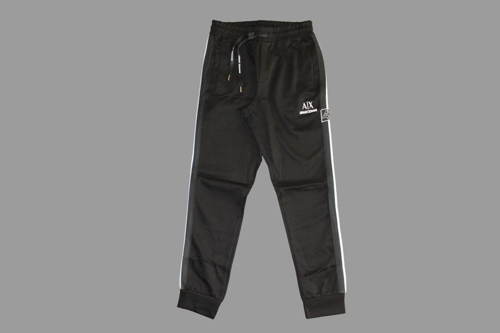 BNWT ARMANI EXCHANGE MEN TRACKSUIT SET INCLUDE TOP AND BOTTOMS BLACK COLOR WITH WHITE LOGO AND SIDE STRIPE FULL ZIP SWEATER WITH POCKETS REGULAR SIZE SHIP SAME OR NEXT WORK DAY FULL TRACKING SERVICE FAST SHIPPING TO USA 7-12 WORK DAYS FOR DELIVERY
