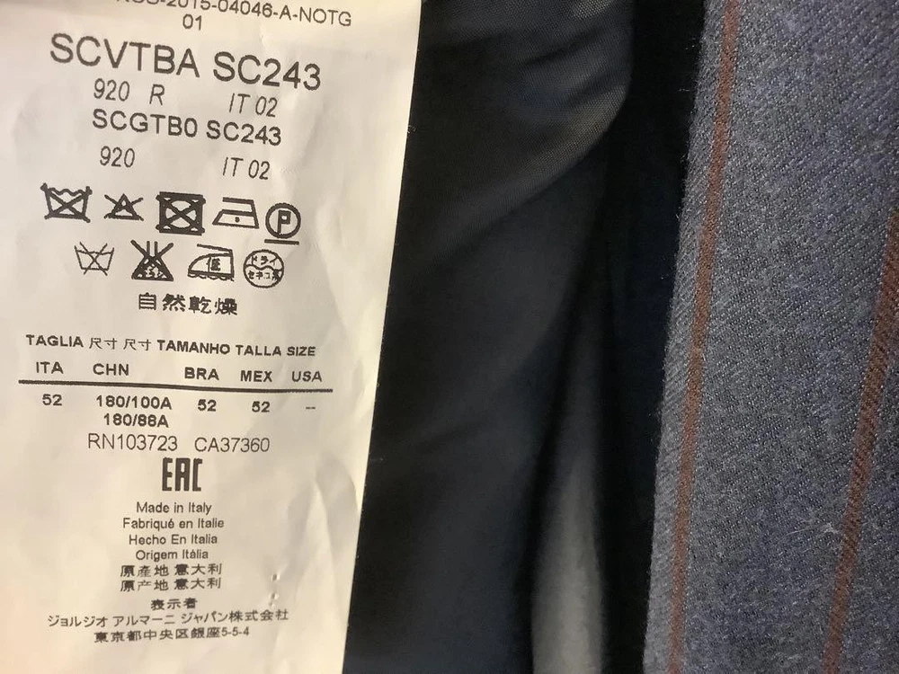 Armani Men's Suit 52 XL Navy Gray Red Stripe Used Key Features This is a stylish men's blazer, previously received as a gift and stored unused. It has outgrown its size, so I am offering it for sale. The color resembles a blend of navy blue and gray, with the cuff area close to the authentic shade. The blazer features a subtle red stripe pattern. It is size Italy 52, equivalent to Japanese XL or possibly one size larger. Please refer to the actual measurements for a better fit: - Shoulder width: approximately 48cm - Length: approximately 72.5cm - Sleeve length: approximately 67cm - Waist: approximately 86cm - Inseam: approximately 83cm - Waist to hem (belt area): approximately 104cm Please note minor measurement variations are possible. The item condition is excellent with no visible damage. Item Specifics: Brand: [Not specified] Type: Blazer Size: Italy 52 / Japanese XL Color: Navy Blue/Gray Specifications Brand Armani Country Japan Product Description Description Thank you for your interest. This item is not new, but a used item that was given away. Please check the photos for the condition of the item. Please understand that the condition of the item is subjective and the standard of evaluation and feeling may vary from person to person, so please be aware that this is a used item before bidding. Please check the photos for the condition of the item, such as scratches and stains. To prevent problems, please feel free to contact us if you have any questions about the size or other details of the item. We will be happy to adjust the price. We will do our best to ship your order as soon as possible. We will do our best to ship as soon as possible, but there may be delays during the busy harvest season. Remarks All the products we sell are obtained and sold by pawn shops that are authorized brands, so all the products we handle have been authenticated to meet our strict standards for authenticity, so please buy with confidence. Payment Supports managed payments Please pay within 5 days after auction is finished. About Us We are located in Japan. It's our pleasure to make you happy by proposing our recommend item. If you have any questions or request about items, please feel free to ask us. International Buyers - Please Note: -Importduties, taxes, and charges are not included in the item price or shipping charges. These charges are the buyer's responsibility. -Please check with your country's customs office to determine what these additional costs will be prior to bidding/buying. -These charges are normally collected by the delivering freight (shipping) company or when you pick the item up - do not confuse them for additional shipping charges. -We do not mark merchandise values below value or mark items as - gifts - The US and International government regulations prohibit such behavior. Thank you for your understanding