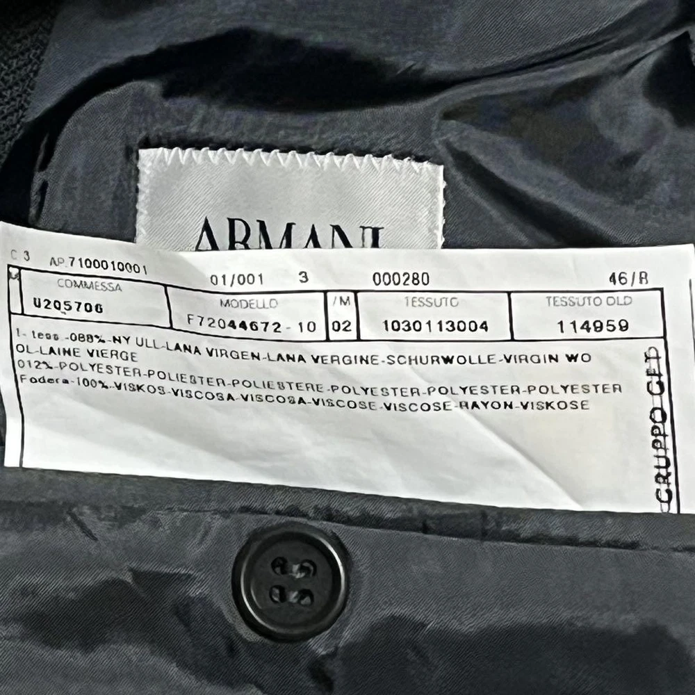 Description Thank you for your interest. - Color: Dark gray - Brand: Armani Collezioni - Style: 3-button jacket - Pants style: Slacks - Listed size: 46R (equivalent to Japanese size M or L) Actual measurements Shoulder width: 45cm Chest width: 53cm Sleeve length: 60cm Length: 78cm Slacks Waist: 41 Thigh width: 33 Hem width: 22 Rise: 31 Inseam: 75 No stains, tears, odors, etc. This item is not new, but a used item that was given away. Please check the photos for the condition of the item. Please understand that the condition of the item is subjective and the standard of evaluation and feeling may vary from person to person, so please be aware that this is a used item before bidding. Please check the photos for the condition of the item, such as scratches and stains. To prevent problems, please feel free to contact us if you have any questions about the size or other details of the item. We will be happy to adjust the price. We will do our best to ship your order as soon as possible. We will do our best to ship as soon as possible, but there may be delays during the busy harvest season. Remarks All the products we sell are obtained and sold by pawn shops that are authorized brands, so all the products we handle have been authenticated to meet our strict standards for authenticity, so please buy with confidence. Payment Supports managed payments Please pay within 5 days after auction is finished. About Us We are located in Japan. It's our pleasure to make you happy by proposing our recommend item. If you have any questions or request about items, please feel free to ask us. International Buyers - Please Note: -Importduties, taxes, and charges are not included in the item price or shipping charges. These charges are the buyer's responsibility. -Please check with your country's customs office to determine what these additional costs will be prior to bidding/buying. -These charges are normally collected by the delivering freight (shipping) company or when you pick the item up - do not confuse them for additional shipping charges. -We do not mark merchandise values below value or mark items as - gifts - The US and International government regulations prohibit such behavior. Thank you for your understanding