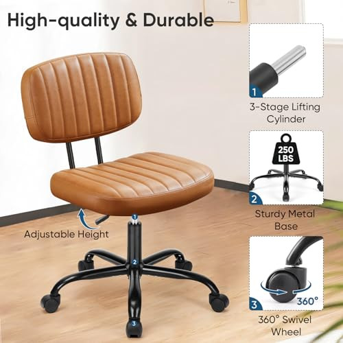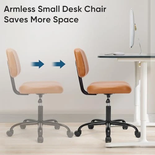 Return Policy Fast Delivery Trusted seller Armless Home Office Desk Chair -Small Ergonomic with Low Back Lumbar Support, Height Adjustable PU Leather Computer Task with 360° Swivel Rolling Wheels, for Small Space, Brown Product Description PREMIUM MATERIALS - This small office chair without an armrest is constructed with top-notch materials to maximum comfort and longevity. It features a high-density, thickened sponge cushion (2.5 inches), that provides exceptional comfort and resilience. The chair is upholstered with high-quality PU leather, ensuring both waterproof protection and breathability through its twill design. SPACE SAVING DESIGN - This small armless office chair is designed with space-saving features in mind. The height-adjustable dimensions (24.21"(L) x 16.33"(W) x 34.25"(H)) ensure that it will fit perfectly into any office or workspace. Additionally, the armless design makes it easy to store it under your desk when not in use, maximizing the available space in your office area. ENHANCED ERGONOMICS - This armless office chair is ergonomically designed for optimal comfort and support. The backrest is specially designed with padded foam to provide excellent lumbar support that is not only comfortable but also soft to the touch. Its backrest is made of high-quality U-shaped metal material, ensuring greater stability and durability. STURDY AND DURABLE - This 360° swivel task chair is built to withstand long hours of use, featuring a high-quality metal base and upgraded SGS-certified cylinders for durability and reliability. This computer desk chair has been rigorously tested over 10,000 times and is BIFMA-certified. With a maximum weight capacity of 250 pounds, this chair is solid and reliable to ensure maximum comfort and safety. HASSLE-FREE ASSEMBLY - All the necessary accessories are included in the package, ensuring a seamless assembly experience. Simply follow the easy-to-understand instructions consisting of just 6 steps, and you'll have your chair ready to use in no time. With an estimated installation time of just 10 minutes, you can enjoy the convenience of a fully assembled chair. Shipping Returns Payment Shipping Shipping is FREE to all addresses other than APO/PO boxes in the lower 48 states. All our stock ships from US-based warehouses. Shipped via USPS or UPS (depending on location and package weight) Unless stated otherwise, all orders will ship within 24-72 hours of your payment being processed. Check our feedback to see the great reviews of FAST shipping we offer. Returns Seller does not accept returns Payment We currently accept payment via eBay managed payments only. Once payment is cleared, we will dispatch your shipment within 1-3 business days. Please refer to the "Shipping" tab for more information regarding shipping speed to your destination.