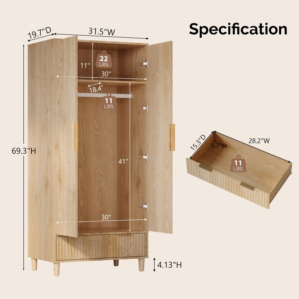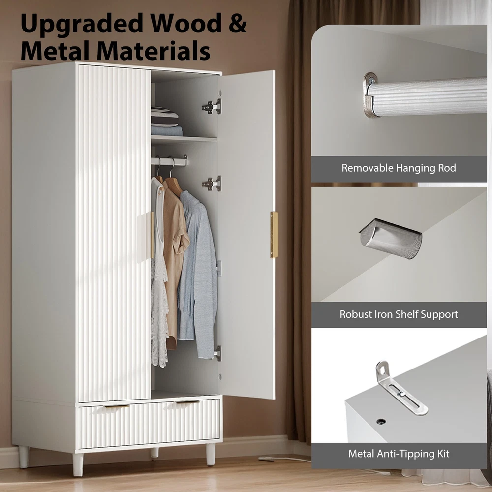 listing template Visit our store Sigh up for email Armoire Wardrobe Closet with Drawers & 2 Fluted Doors Tall Fluted Cabinets Introductions Maximize your bedroom storage with our Farmhouse Armoire Wardrobe, a charming freestanding closet that combines rustic elegance with practical organization. Measuring 31.5"L x 19.7"W x 69.3"H, this spacious cabinet features two fluted doors, a hanging rod, shelves, and drawers to accommodate clothing, linens, and accessories. The natural wood and white two-tone finish adds farmhouse character to any space, while the compact footprint fits comfortably in bedrooms, guest rooms, or apartments. With its versatile storage options and timeless design, this armoire provides a perfect solution for homes lacking built-in closets. Features Farmhouse Charm - Fluted doors with natural/white two-tone finish Multi-Level Storage - Hanging rod + shelves + 2 drawers Space-Saving Design - Fits snugly in corners or small bedrooms Sturdy Construction - Solid wood frame with metal hinges Easy Assembly - All hardware and instructions included Freestanding Convenience - No installation required Specifications Material: Engineered wood with metal hardware Dimensions: 31.5"L x 19.7"W x 69.3"H Hanging Space: 28" rod length Drawer Dimensions: 14"W x 16"D x 6"H each Shelf Dimensions: Adjustable heights Color: Natural wood/White Package Includes 1 x Armoire with 2 Fluted doors You might like this more>> 6-Tier Bamboo Bookshelf Adjustable Storage Shelf Rack $49.99 Professional Cello 4/4 Full Size BassWood Set with Bag $148.99 Stainless Steel 4 Tier Steamer Cooker Steam Pot Kitchen Food $39.29 110 LB x 0.1oz All-In-One Digital Postal Shipping Scale 50kg $22.79 2Pack 10000LM LED Zoomable Flashlight Torch Lamp Light $9.99 Mini Exercise Bike Desk Pedal Bicycle $35.14 Shipping Policy 1. Ship worldwide from New Jersey by reliable shipping companies -- USPS, UPS, FEDEX, DHL, etc., and only to VERIFIED PAYPAL ADDRESS. Transport Delivery ETA. Package handling only takes 1 business day at our warehouse, so please make sure entering correct payment and shipping information before checking out. Once your payment is completed, we are not going to accept any more changes to your order. 2. International Buyers – Please Note: a. Import duties, taxes and charges are not included in the item price or shipping charges. These charges are the buyer's responsibility. b. Please check with your country's customs office to determine what these additional costs will be prior to bidding/buying. 3. Please check your shipping address carefully before checkout, it can't be changed if order completed. 4. Orders placed on weekend will be shipped within 2 days.Notification of shipment with tracking number will be sent to buyers. 5. Standard shipping: 2-7 business days Expedited Shipping: 2-3 business days One-day Shipping: 1 business day International shipping: Varies 6.Ship within 1 business day once payment completed. Notification of shipment with tracking No. will be sent to buyer. 7.We offer discounts for combine shipping. Please contact us first if you need combine shipping, and an invoice with discount will be sent to you. 8.Please allow 5 business days for delivery to US destinations on any eBay orders and 14 business days for delivery to any International destinations. We highly recommend our buyer choose priority/expess mail for international delivery which is much more stable. Return Policies 1. Refunds given only if item DOA and cannot be replaced via PAYPAL . If so, Please contact us with 5 days since you receive the item and and return to us within 30 days from the delivery date for exchange or refund. 2. If you need return, please contact our customer service representative, let us know the detailed problem and send us some pictures for confirmation. Payment Payment should be sent within 8(EIGHT) days of auction closing. Feedback If you are dissatisfied for any reason, please do not be quick to leave negative/neutral feedback. We work hard to make sure EVERY CUSTOMER 100% SATISFIED and resolve any problem for you. Work Time Work Time: Monday to Saturday About Us | Newsletter| Feedback| Contact Us Copyright © 2021 Yallstock. All rights reserved. 无标题文档 Armoire Wardrobe Closet with Drawers & 2 Fluted Doors Tall Fluted Cabinets Introductions Maximize your bedroom storage with our Farmhouse Armoire Wardrobe, a charming freestanding closet that combines rustic elegance with practical organization. Measuring 31.5"L x 19.7"W x 69.3"H, this spacious cabinet features two fluted doors, a hanging rod, shelves, and drawers to accommodate clothing, linens, and accessories. The natural wood and white two-tone finish adds farmhouse character to any space, while the compact footprint fits comfortably in bedrooms, guest rooms, or apartments. With its versatile storage options and timeless design, this armoire provides a perfect solution for homes lacking built-in closets. Features Farmhouse Charm - Fluted doors with natural/white two-tone finish Multi-Level Storage - Hanging rod + shelves + 2 drawers Space-Saving Design - Fits snugly in corners or small bedrooms Sturdy Construction - Solid wood frame with metal hinges Easy Assembly - All hardware and instructions included Freestanding Convenience - No installation required Specifications Material: Engineered wood with metal hardware Dimensions: 31.5"L x 19.7"W x 69.3"H Hanging Space: 28" rod length Drawer Dimensions: 14"W x 16"D x 6"H each Shelf Dimensions: Adjustable heights Color: Natural wood/White Package Includes 1 x Armoire with 2 Fluted doors Shipping + 1. Ship worldwide from New Jersey by reliable shipping companies -- USPS, UPS, FEDEX, DHL, etc., and only to VERIFIED PAYPAL ADDRESS. Transport Delivery ETA. Package handling only takes 1 business day at our warehouse, so please make sure entering correct payment and shipping information before checking out. Once your payment is completed, we are not going to accept any more changes to your order.
