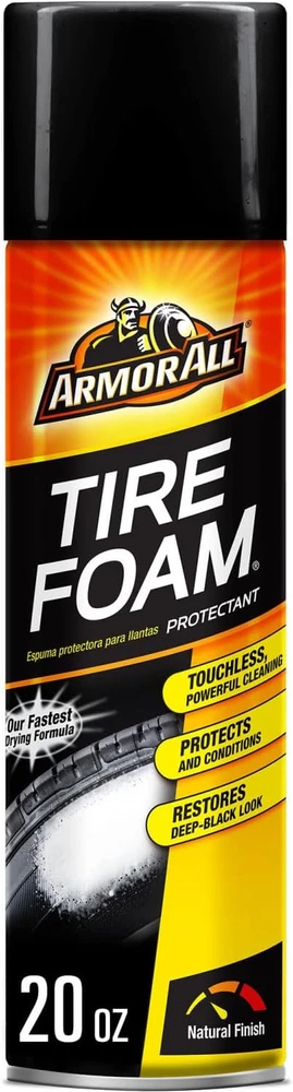 Armor All Tire Foam Automotive Protectant Foam, Wheel Cleaner, Aerosol Spray, 20 Ounce (Pack Of 2) Armor All Tire Foam Protectant not only cleans and conditions your tires, but it also help prevent ozone degradation, which can cause drying, cracking and fading. This intense foaming cleaner activates on contact, floating dirt away without scrubbing, while conditioners nourish and restore tires' natural beauty and deep, black appearance. About this item 20 oz canister of Armor All Tire Foam Automotive Cleaner and Protectant for clean and nourished tires This tire foam cleaner activates on contact to remove dirt without scrubbing for an easy clean Armor All protectant for tires contains conditioners to nourish and restore tires' deep, black look Simply spray on wet or dry tires and let dry—the perfect addition to tire care routine Blocking agents in this car tire cleaner protect your tires from harmful elements that can cause cracking and fading over time. Fast and easy to use, simply apply this tire foam spray to wet or dry tires and let dry. Armor All tire protectant is the perfect addition to your car protectant products, whether you're detailing your motorcycle, classic car or daily ride. One easy step, just spray and walk away Intense foam activates on contact floating dirt away without scrubbing Conditioners nourish and restore your tire's deep black look Blocking agents protect from harmful elements that can cause cracking and fading Ingredients Contains: Silicones.