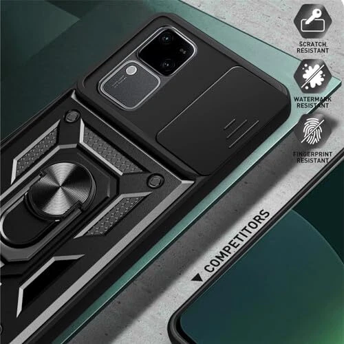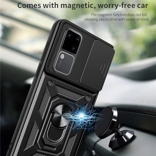 Return Policy Fast Delivery Trusted seller Armor Case for Vivo V30 /V30 Pro with Sliding Camera Cover, Military Grade Heavy Duty Shockproof Protective Phone Case with Kickstand for Vivo V30 /V30 Pro SJ Black Product Description 【Model】Phone case compatible with Vivo V30 /Vivo V30 Pro. 【Lens Slide Cover】The innovative lens slide cover feature of this product allows for seamless cover opening and closing. With a smooth slide motion, the lens cover easily reveals the camera lens, ensuring quick access and enhanced user convenience. 【Rotating Stand】The built-in rotating stand enables versatile positioning options, making it ideal for capturing videos or enjoying multimedia content. It provides flexible viewing angles, allowing users to adjust the device to their preferred orientation for an enhanced multimedia experience. 【Sturdy and Durable】This product has undergone rigorous drop tests to ensure durability and withstands accidental drops and impacts. Its robust construction and reliable build quality make it a suitable choice for long-term use. 【Car Mount】This product features a built-in metal plate that makes it compatible with car mounts. The integrated metal plate ensures a secure grip when attached to magnetic car mounts, providing a stable and hands-free experience while driving. Shipping Returns Payment Shipping Shipping is FREE to all addresses other than APO/PO boxes in the lower 48 states. All our stock ships from US-based warehouses. Shipped via USPS or UPS (depending on location and package weight) Unless stated otherwise, all orders will ship within 24-72 hours of your payment being processed. Check our feedback to see the great reviews of FAST shipping we offer. Returns Seller does not accept returns Payment We currently accept payment via eBay managed payments only. Once payment is cleared, we will dispatch your shipment within 1-3 business days. Please refer to the "Shipping" tab for more information regarding shipping speed to your destination.