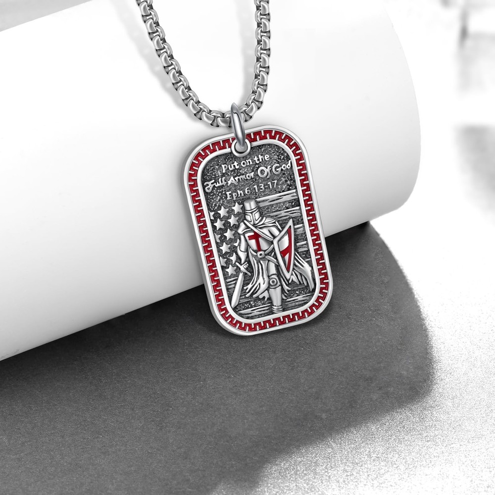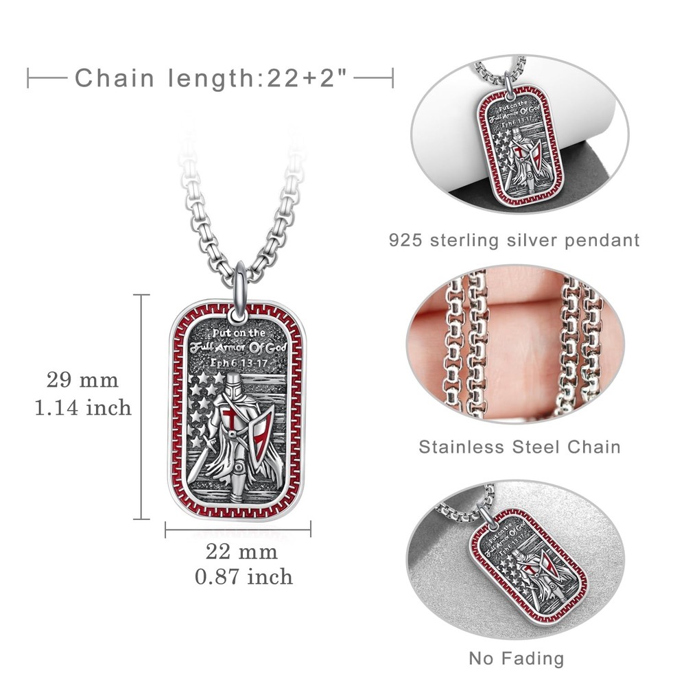 Armor of God Necklace Sterling Silver Knights Templar Necklace Christian Jewelry for Men Design: The Armor of God Necklace symbolizes divine protection, strength, and spiritual resilience. Inspired by the Knights Templar, this necklace embodies the warrior spirit of faith, courage, and commitment to a higher calling. The powerful imagery of the Armor of God serves as a constant reminder of inner strength, guiding the wearer through life's challenges with unwavering faith and protection. Armor of God Necklace Material: Crafted from high-quality 925 sterling silver, this Armor of God pendant is designed for durability and lasting beauty. The intricate detailing captures the essence of divine armor, offering a stylish yet meaningful accessory for everyday wear. The accompanying stainless steel chain is strong and comfortable, making it a perfect choice for men seeking both protection and style in their jewelry. Knights Templar Necklace Size: Pendant size: 22 x 29 mm (0.87 x 1.14 inches), chain length: 22+2 inch extension, adjustable for a perfect fit. Whether you're wearing it for spiritual inspiration or as a bold statement of faith, this necklace will complement your style. Knights Templar Christian Jewelry Gift: This Armor of God necklace for men comes in a beautifully crafted gift box, with a polishing cloth included for easy maintenance. It's an ideal gift for any occasion, including birthdays, graduations, Father's Day, Christmas, and more. Perfect for anyone who values faith, strength, and protection—gift this meaningful piece to loved ones or keep it for yourself as a daily reminder of divine power. Satisfaction Service: We are committed to offering high-quality jewelry that you'll love. If you have any questions or concerns about your purchase, feel free to contact us. Your satisfaction is our top priority, and we are here to provide exceptional service and support.