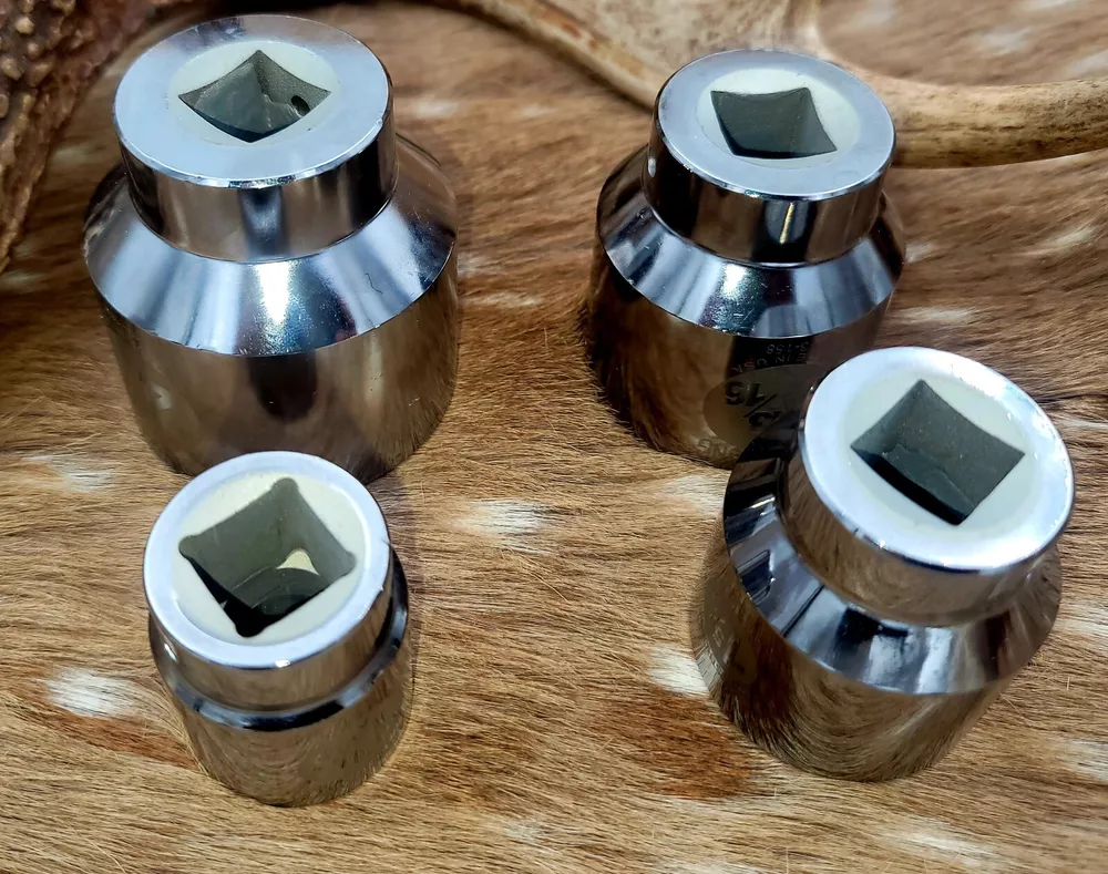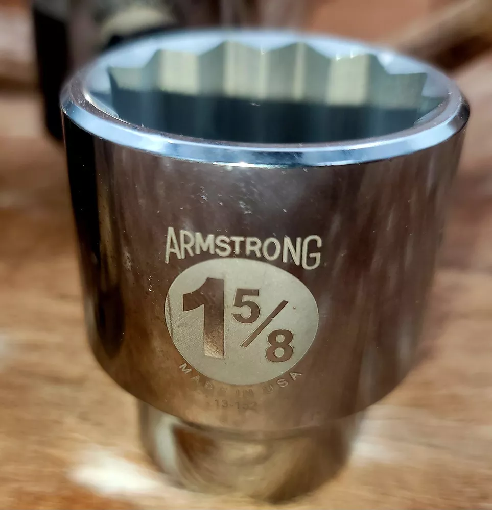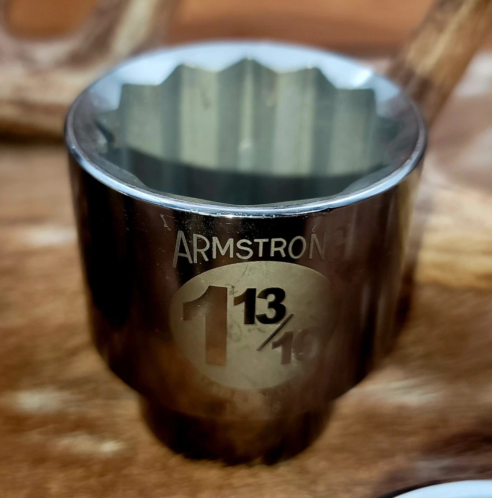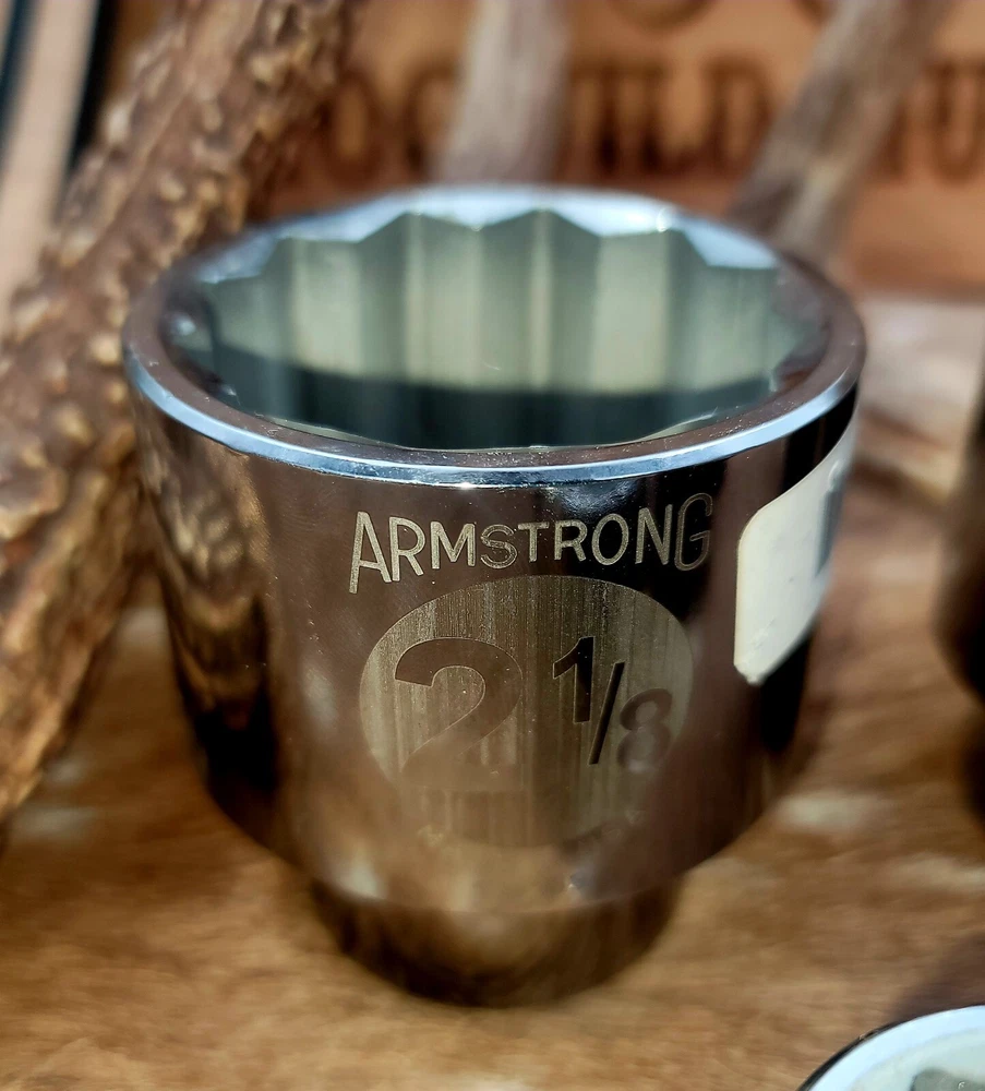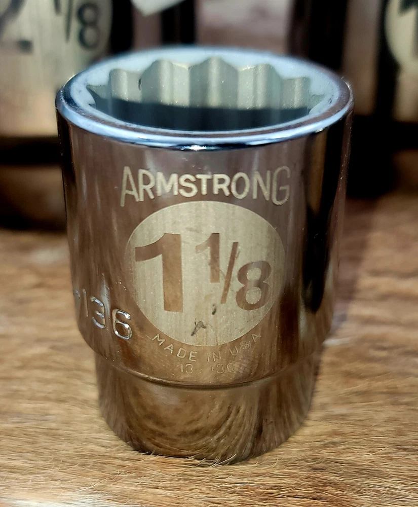 This Armstrong 3/4 inch Dr. Sockets set is the perfect addition to any mechanic's or DIY enthusiast's tool collection. Made with a durable chrome surface finish and 12 point design, these sockets are built to last and provide a secure grip on your fasteners. The set includes a variety of sockets, all made in the United States, ensuring that you have the right tool for any job. Whether you're a professional mechanic or a weekend warrior, this set is sure to impress. This is NEW OLD STOCK. Sizes 1-13/16, 2-1/8, 1-5/8, 1-1/8. 1 of each socket is included. Total of 4 sockets.