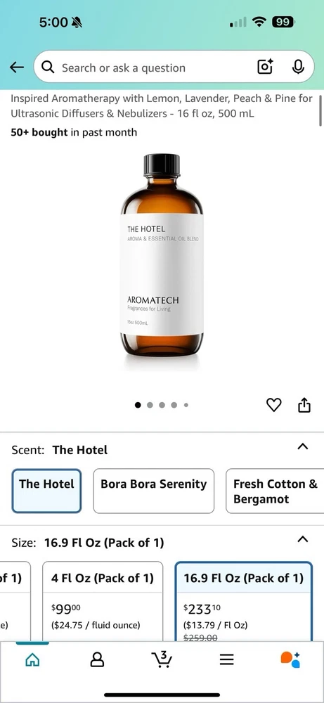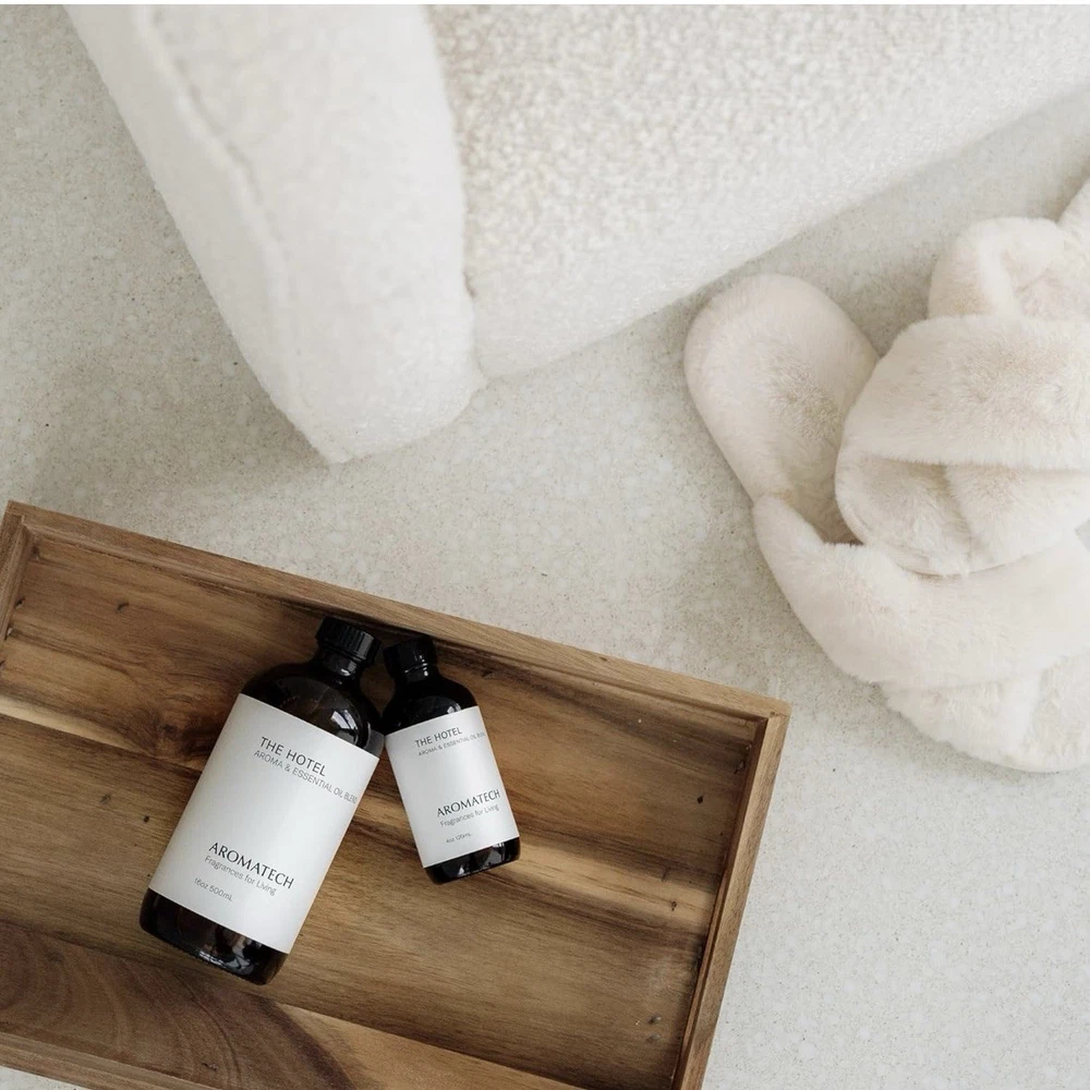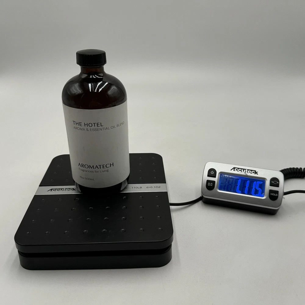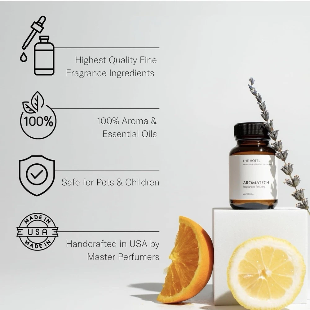 AromaTech The Hotel Aroma Essential Oil Blend: Luxury Hotel Inspired Aromatherapy with Lemon, Lavender, Peach & Pine for Ultrasonic Diffusers & Nebulizers - 16 fl oz, 500 mL The bottle is a little dirty due to storage, but the item is new never used. This item will be very carefully packaged in a box for best results. I will make sure that this item is bubble wrapped and double boxed so it can ship safe. Enjoy fast free shipping when you order today (More about the item) THE HOTEL: Immerse yourself in the epitome of luxury with our iconic The Hotel fragrance. This exquisite blend of lavender, lemon, orange, juicy peach, red rose, geranium, and fresh pine evokes the sophistication and tranquility of a refined hotel. ENRICH THE EVERYDAY: The Hotel is a floral-woody scent that transcends the boundaries of day and night. The soothing lavender harmonizes beautifully with the bright citrus notes of lemon and orange, while the juicy peach adds a touch of sweetness. The floral notes of red rose and geranium create a romantic and elegant atmosphere, while the fresh pine provides a grounding base. KEY NOTES: Lavender, Lemon, Peach, Red Rose, Geranium, Fresh Pine. MOOD: Relaxing, Serene, Sophisticated. PURE AROMA & ESSENTIAL OIL BLEND: AromaTech scents are crafted with the finest aroma and essential oils to yield exceptional aromas—complex, rich, and memorable; able to transform any mood or setting. VERSATILE USE: Perfect for ultrasonic diffusers or powerful nebulizing diffusers. MADE IN USA: Experience the quality of American-made aroma oil blends. SAFE & CRUELTY FREE: IFRA certified. Vegan, and free of parabens, formaldehyde, petrochemicals, artificial additives, synthetic colors, and harmful chemicals. DISCOVER: The difference of The Hotel fragrance. Elevate your living space with unparalleled luxury.
