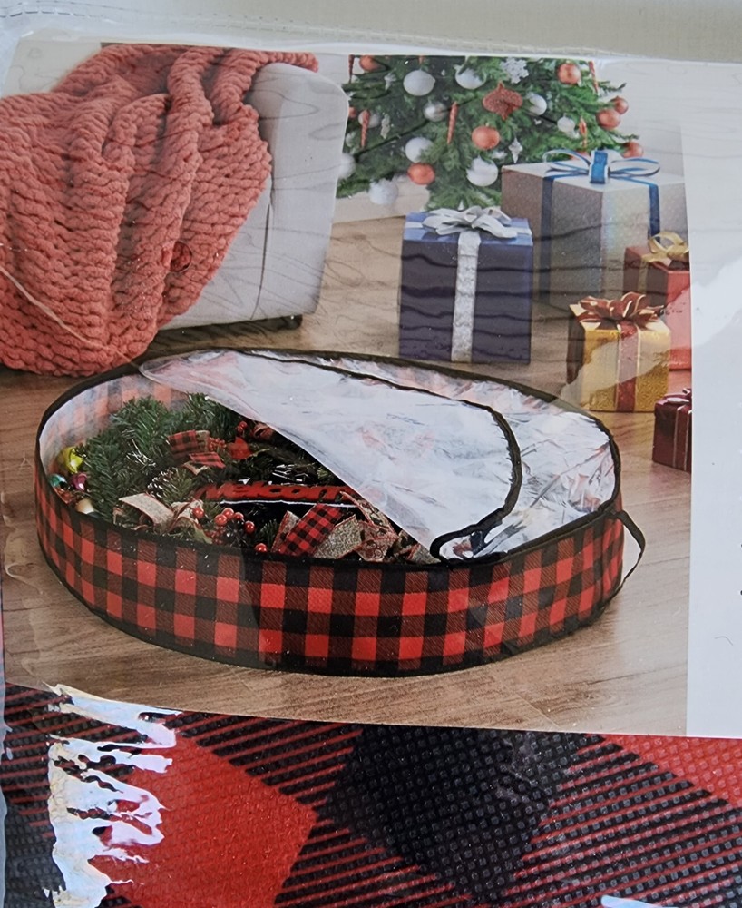 Keep your holiday wreaths fresh and organized with this stylish storage solution from Around The Home. Made from high-quality fabric in a classic red and black plaid pattern, this wreath storage is perfect for the Christmas season. Measuring 36 x 36 x 6.3 inches, it is designed to hold wreaths of various sizes and types. This wreath storage is a great addition to your holiday decor collection. Around The Home 36" Round Wreath Storage Red/Black Plaid Fabric Clear Cover. Condition can best be viewed by zooming in on pictures, which are a large part of the description. Buyer responsible for reviewing pictures showing condition so please look at them carefully and feel free to ask questions before making purchase. Feedback is greatly appreciated!
