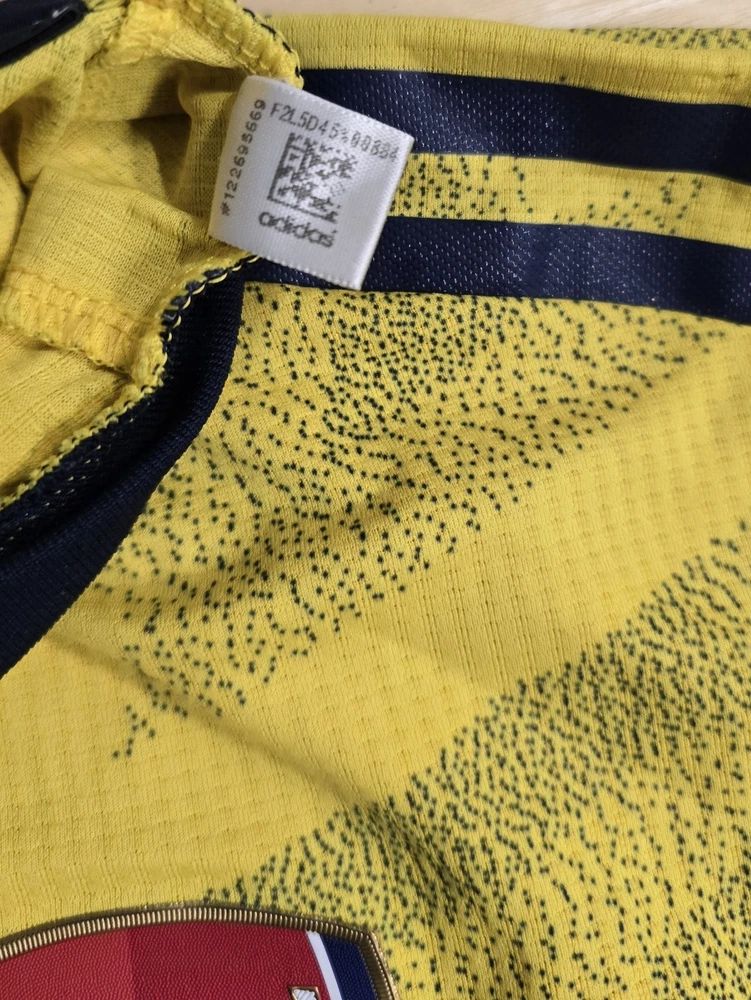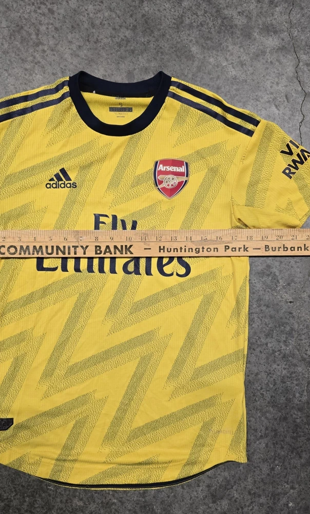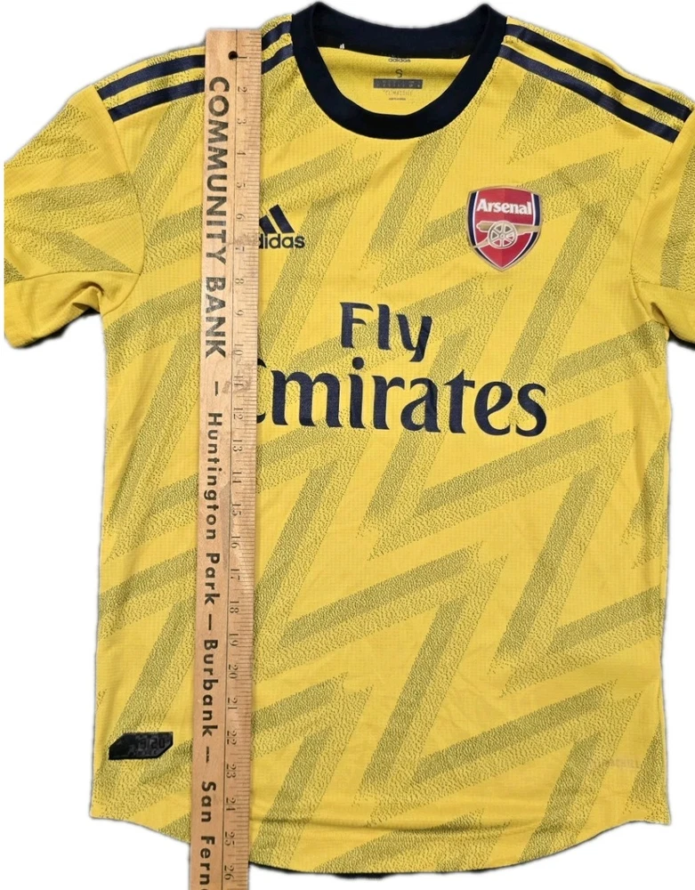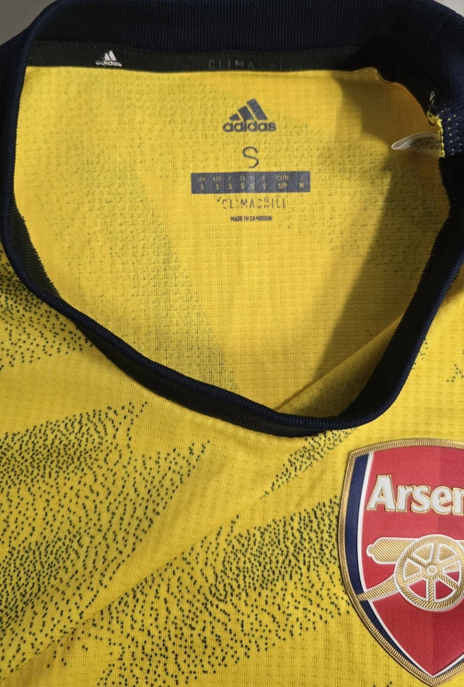 Arsenal FC 2019/20 Away "Authentic" Player Version Jersey Up for sale is a 100% genuine Adidas Arsenal Away Shirt from the 2019/20 season. This is the highly sought-after Authentic (Player Issue) version, featuring the iconic modern "Bruised Banana" zig-zag pattern. This version is exactly what the players wore on the pitch, featuring premium lightweight materials and a sleek athletic fit. Product Details: Club: Arsenal FC Season: 2019/2020 Type: Authentic / Player Version (Better than the standard replica) Product Code (MPN): EH5638 (Verified on internal wash tags) Size: Small (S) - Note: Authentic kits have an "Athletic Fit." It is slimmer and more contoured than a standard fan shirt. Technology: Climachill (Heat-conductive fabric to keep players cool) Condition: Vintage very good condition. Please see all photos for details.