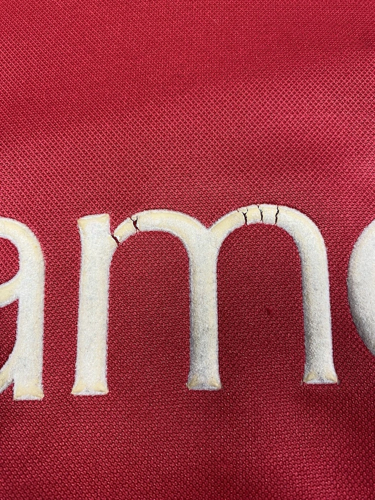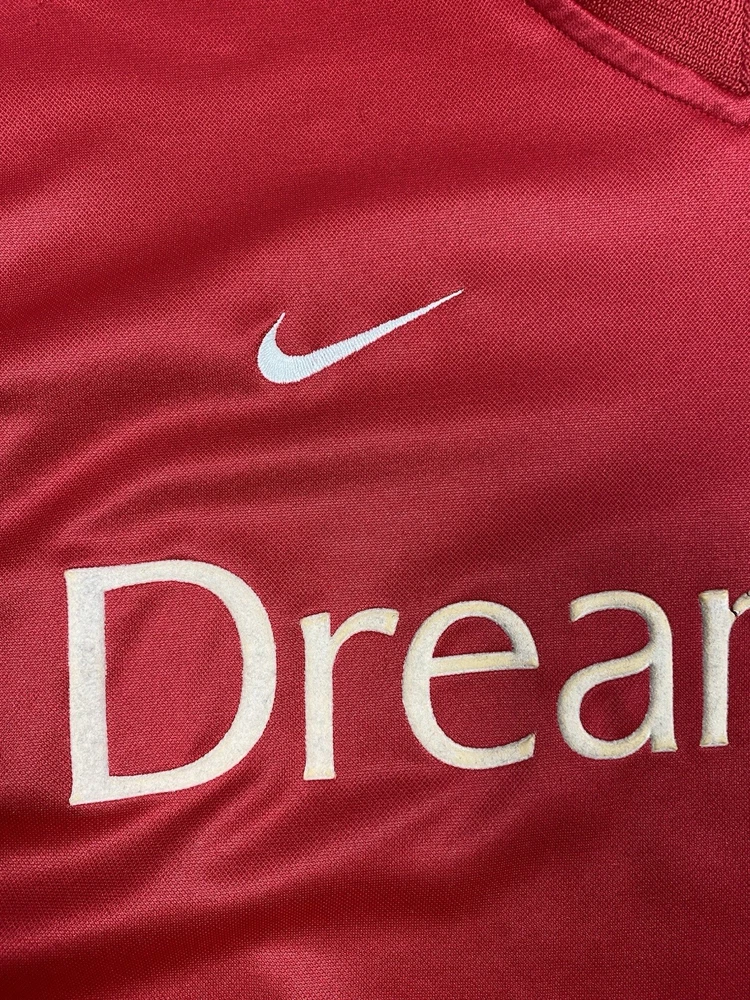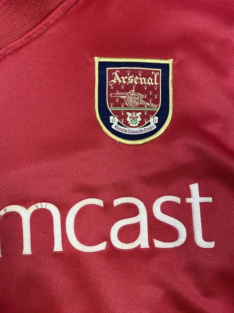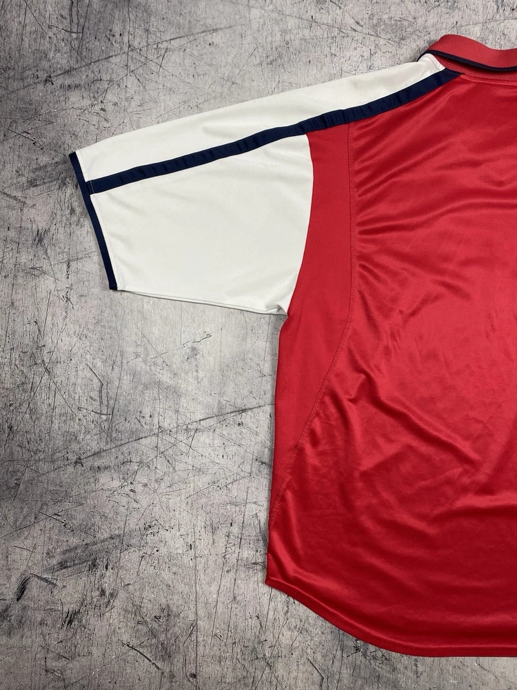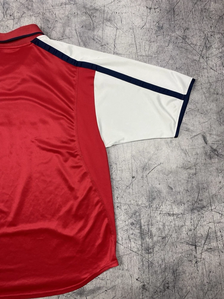 Arsenal FC Home Shirt 2000–2002 – Nike Dreamcast Iconic Arsenal jersey from the Dreamcast era. Original Nike production, adult size XL. Measurements: • Shoulders: 53 cm / 20.9 in • Chest: 58 cm / 22.8 in • Length: 75 cm / 29.5 in Condition: good vintage. Sponsor print has cracking on letter “M” – typical for age, please see photos. 100% authentic. Worldwide shipping with tracking.