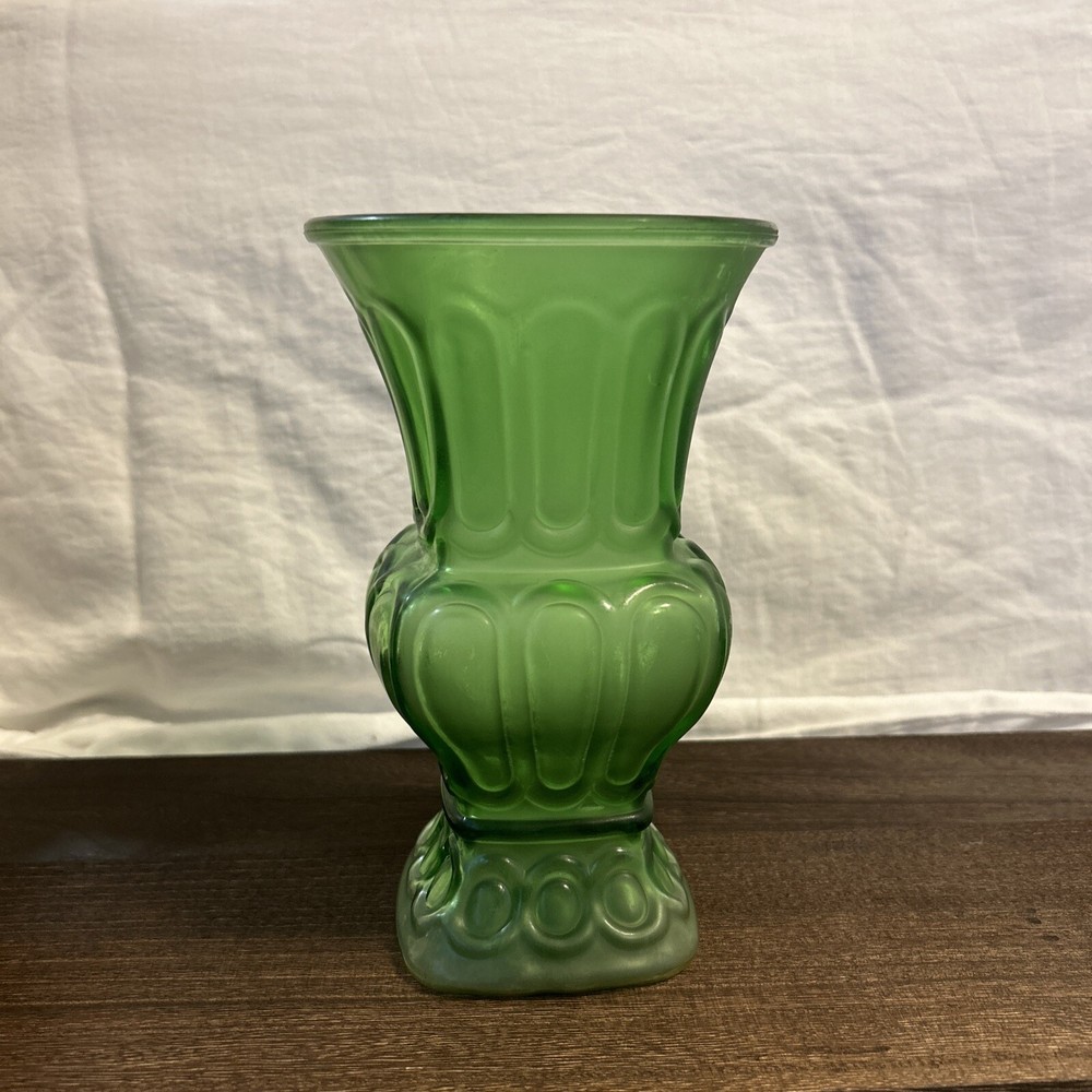 Crafted by the esteemed A.L. Randall Co., this emerald green floral vase is a testament to the timeless elegance of mid-20th-century design. With its artful etching and glossy finish, this hand-blown glass piece, produced in the 1950s, exemplifies the skill and style of American Art Deco glassware. The vase stands at 8 inches tall, weighs 1 lb 5.8 oz, and features a delicate floral pattern that wraps around the exterior, adding a touch of nature's beauty to its craftsmanship. Originating from Italy, this original piece from the American Sweetheart product line is a true vintage gem. Its production style and technique reflect the artistic era of the 1950s, making it not only a decorative item but also a piece of history. Whether placed on a mantle or used as a vase, this A.L. Randall Co. creation is sure to be a conversation starter and a cherished addition to any collection.