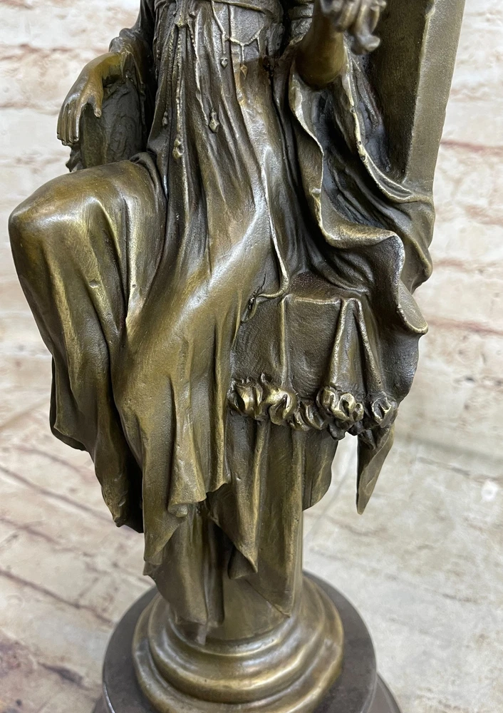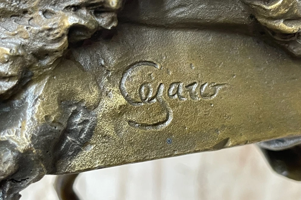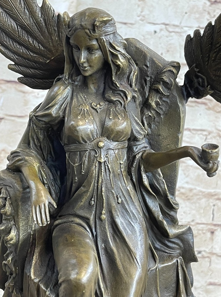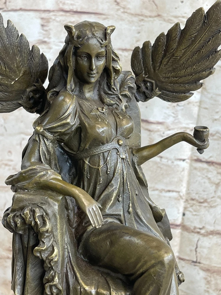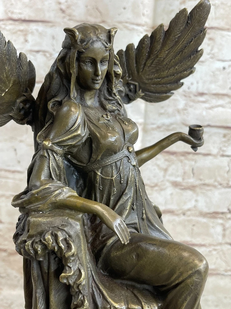 Art Deco Hot Cast Large Cleopatra Mistress of seduction Bronze Sculpture Artwork Art Deco Hot Cast Large Cleopatra Mistress of seduction Bronze Sculpture Artwork Condition : This sculpture is in a perfect condition. Bronze Dimensions with Marble Base: Height 18" X Width 8" Marble Dimensions: Diameter 6.5" Height without base:15" Weight:18 LBS Inventory:17YDZ06710071 This exquisite sculpture depicts the iconic Cleopatra sitting regally inside her palace, gazing into a mirror adorned with images of goddesses. The queen of Egypt at only 17 years old, Cleopatra's legendary bearing and seductive charm continue to elevate her among rulers and women. Hand-cast in pure bronze, this sculpture features an amazing replica of ancient cypress—the wood of the pharaohs—as its finish. The intricate detailing captures Cleopatra's allure and majesty, from her elegant posture to the ornate designs of her surroundings. The sculpture sits atop a large, heavy black marble base, providing a striking contrast that enhances its regal presence. The black marble base not only adds to the sculpture's stability but also accentuates its luxurious appeal. Cleopatra's serene expression and the finely crafted elements around her make this piece a true work of art, reflecting both historical reverence and artistic excellence. Signed by the artist Cezaro, this sculpture is a coveted collectible, perfect for adding a touch of ancient elegance to any collection. Whether displayed in a home, office, or gallery, it is sure to captivate viewers with its timeless beauty and intricate craftsmanship. Add this remarkable piece to your collection today and celebrate the enduring legacy of Cleopatra. Signed Original artwork by Cesaro Cleopatra Egyptian Goddess bronze Sculpture Video will open in a new window Using the eBay App? Paste link into a browser window: [isdntekvideo] Shipping Terms : Most of our items are shipped via USPS (United States Postal Service) mail or UPS. Most orders are shipped within 24-48 hours of purchase. Please be aware that not all items are available for USPS shipping due to size and weight. We do ship to Hawaii, Alaska, Canada, Puerto Rico, APO/AE, and U.S. Virgin Islands, however, an additional charge may be required. Please contact us before making any purchases in these areas. For Non-USA customers, you may be responsible for all duty, tax, brokerage fees that may be due upon delivery (shipping costs cover freight charges only). We also ship internationally. Please refer to the "Shipping and Handling" chart for the rates for each area. Payment : We accept just about any form of payment. PayPal, Master Card, Visa or American Express credit cards. Money orders, cashiers checks, and even personal or business checks. For governmental institutions, we will also accept a purchase order. Please understand that for personal or business checks we have to wait for the check to clear (usually 7 days) before shipping. Condition : New Detailed Hand Crafted Hot Cast Bronze Satisfaction Guaranteed. This is Stock Photo, Slight Color Variation!! Listing and template services provided by inkFrog