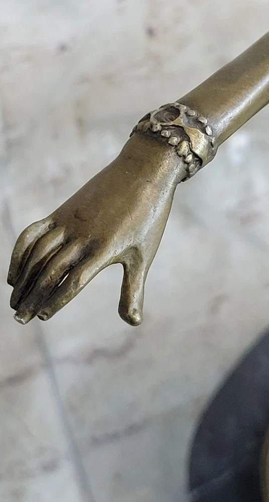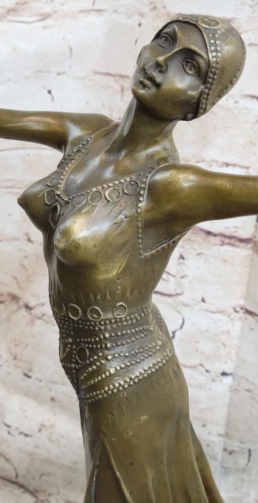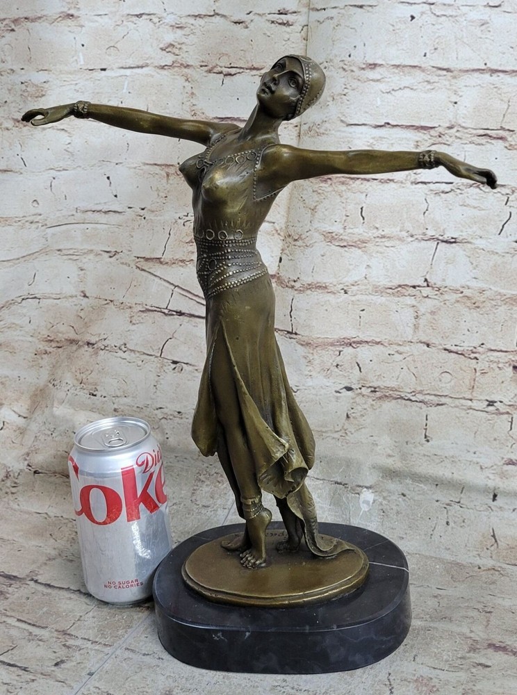 Condition : This sculpture is in perfect condition. Bronze Dimensions with Marble Base: Height 15" x Width 12" Marble Dimensions: Diameter 7" Height without base:14" Weight:11 LBS Inventory:45Y2274754 Marvel at the captivating beauty of the "Admirable Dancer," a stunning bronze sculpture that immortalizes the grace and artistry of a dancer in a mesmerizing pose. This exquisite artwork captures the essence of the dancer's performance as she balances gracefully on her toes, extending her arms in a second position with a graceful tilt of her head. Dressed in a Russian dance costume that accentuates her figure, the dancer becomes a vision of artistic movement frozen in time. The intricate details of the costume and the poised stance showcase the artist's dedication to capturing the beauty and fluidity of dance. Crafted with precision, the sculpture is a testament to the skillful use of the lost wax method, a traditional technique that allows for intricate detailing and ensures the authenticity of the artwork. Resting on a sleek black marble base, the sculpture not only adds a touch of elegance but also enhances the visual impact of the artwork. The piece is signed by D.H. Chiparus, a renowned artist known for his exceptional sculptures that often depict dancers and figures in dynamic poses. Ideal for art enthusiasts and those who appreciate the expressive beauty of dance, the "Admirable Dancer" brings a sense of movement and sophistication to any space. Bronze Sculpture D.H. Chiparus Dancer Standing On Her Toes Bronze Sculpture Deco \ Video will open in a new window Using the eBay App? Paste link into a browser window: [isdntekvideo]