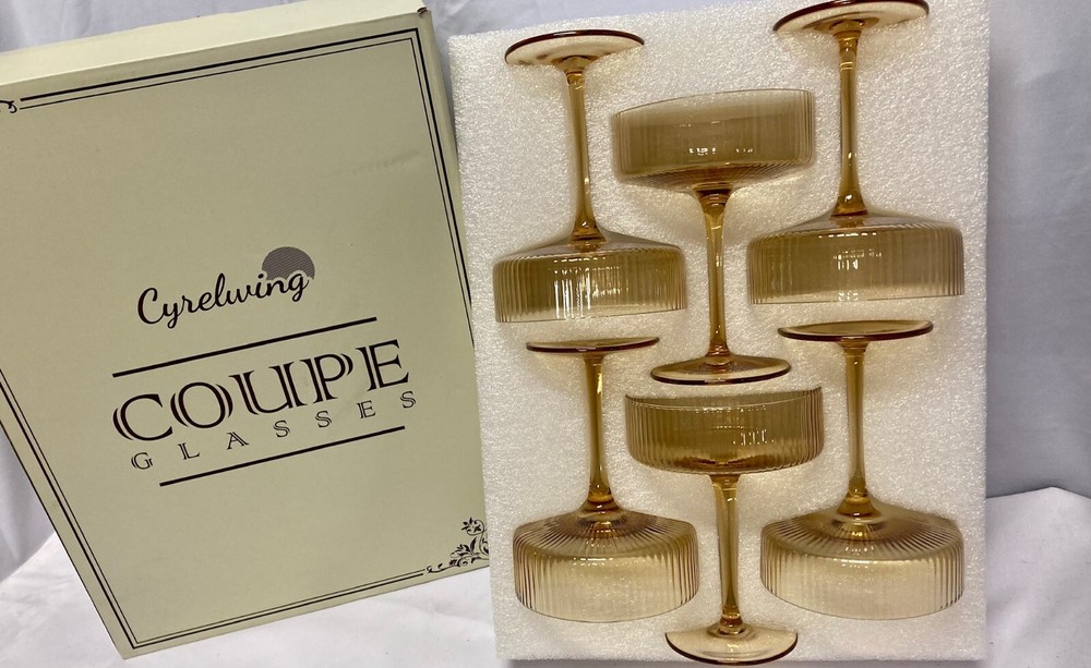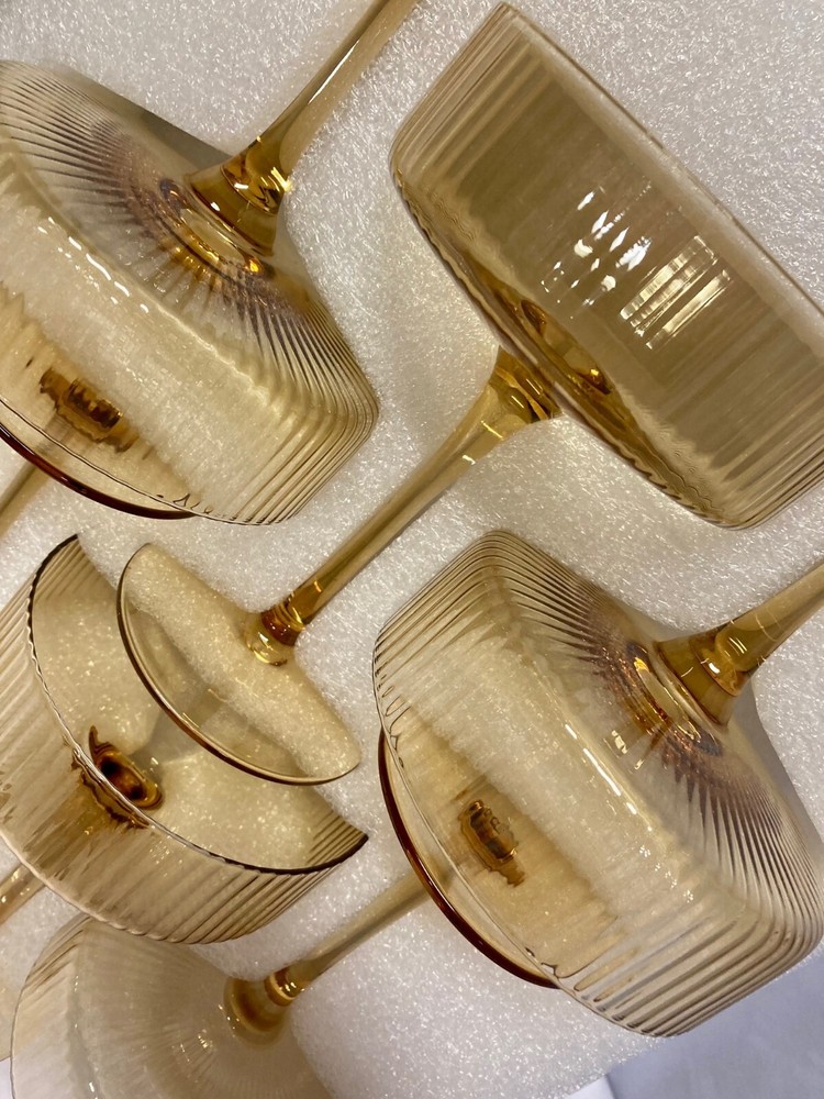 Tracking Number is provided for all listings! -- All items will be shipped out within 0-1 days after purchase! Feel free to ask us any questions you may have for our listings! -- 【Set of 6 vintage coupe glasses】Our Vintage Art Deco Coupe Glasses, a set of six beautifully crafted colored ribbed coupe glasses.The glasses, boasting a unique ripple ribbed design, add a touch of elegance and fun to any bar or entertainment space Ribbed 9 oz, Amber